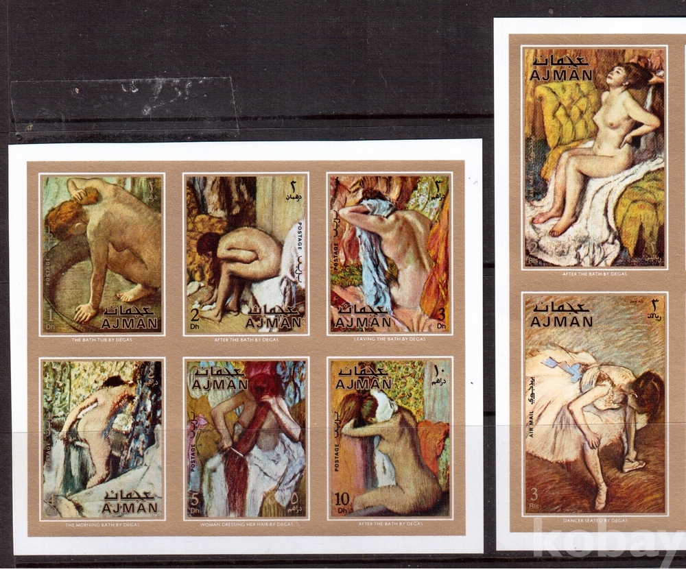 (누드명화) Ajman(아지만) 1971 에드가 드가의 욕조외 (무공) sheet of 6+pair MNH