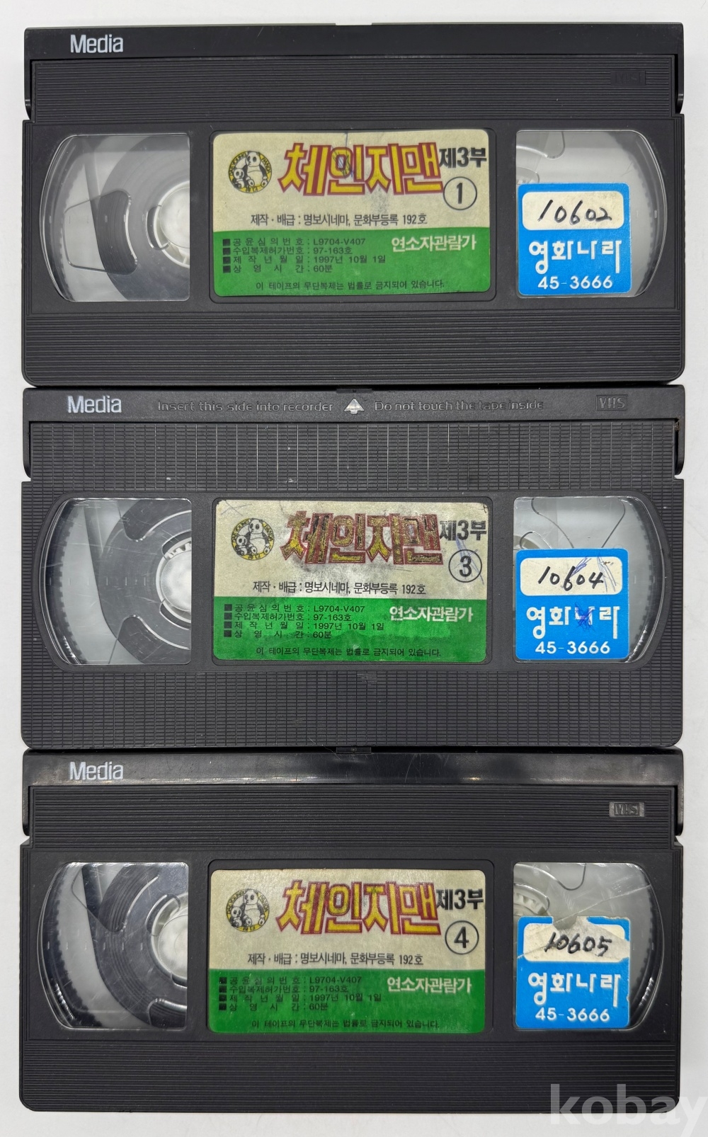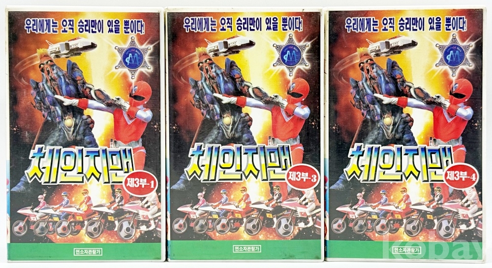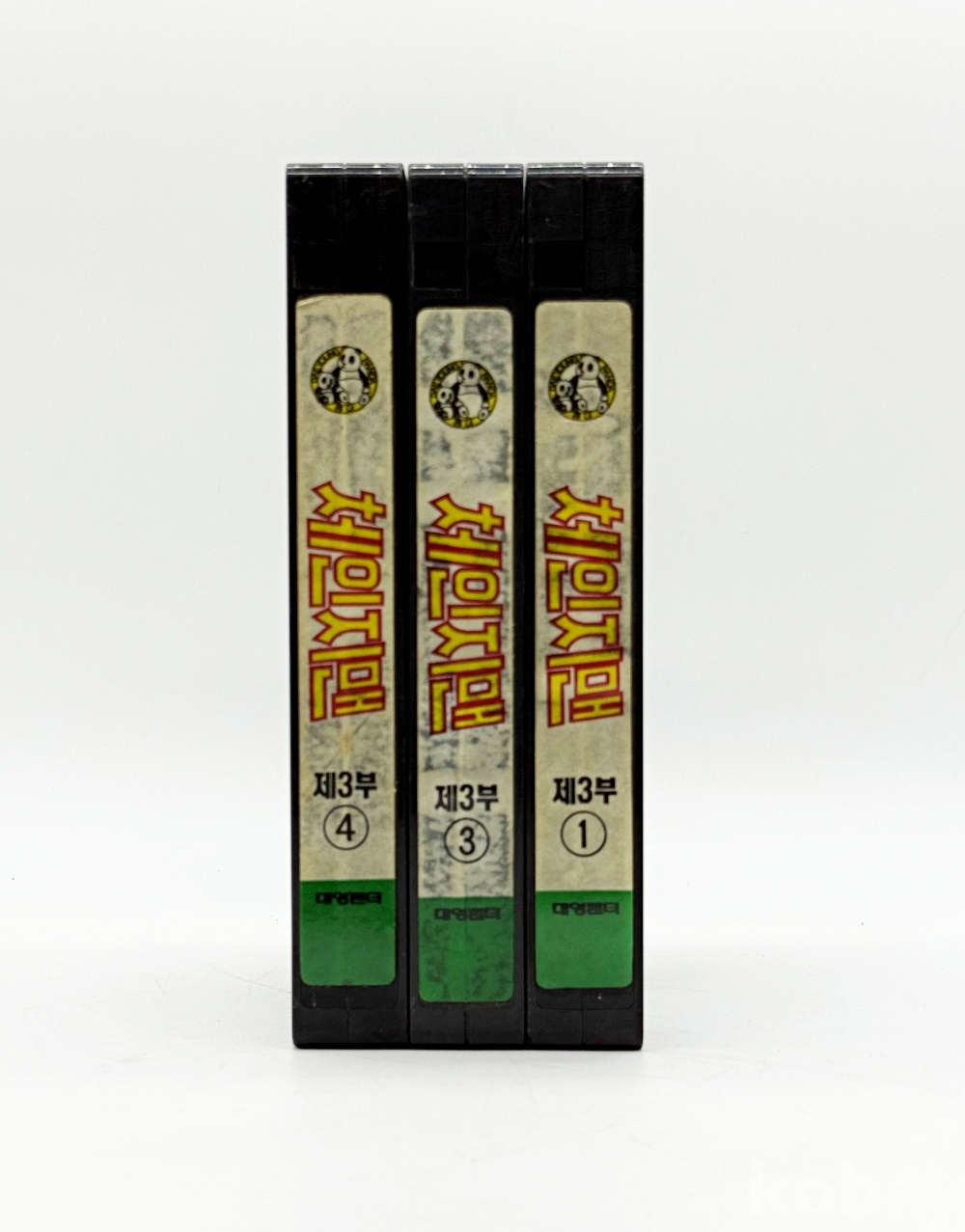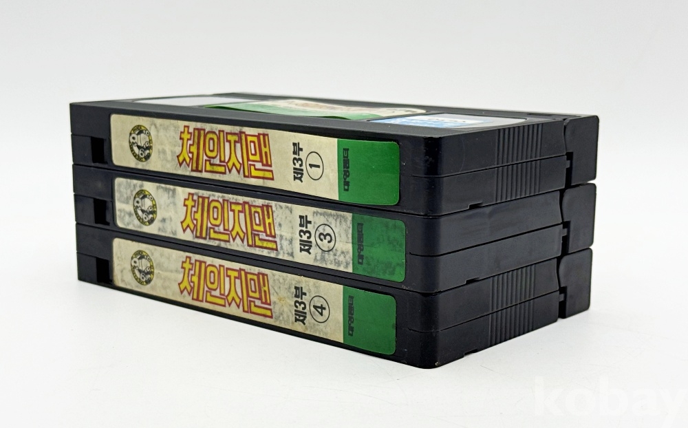 상품 설명 | 1) 체인지맨 제3부-1편 / 1997년 / 케이스 하단 깨짐, 테이프 라벨 접착 일부 떨어짐 2) 체인지맨 제3부-3편 / 1997년 / 테이프 낙서 3) 체인지맨 제3부-4편 / 1997년 / 테이프 깨짐 있음 |
