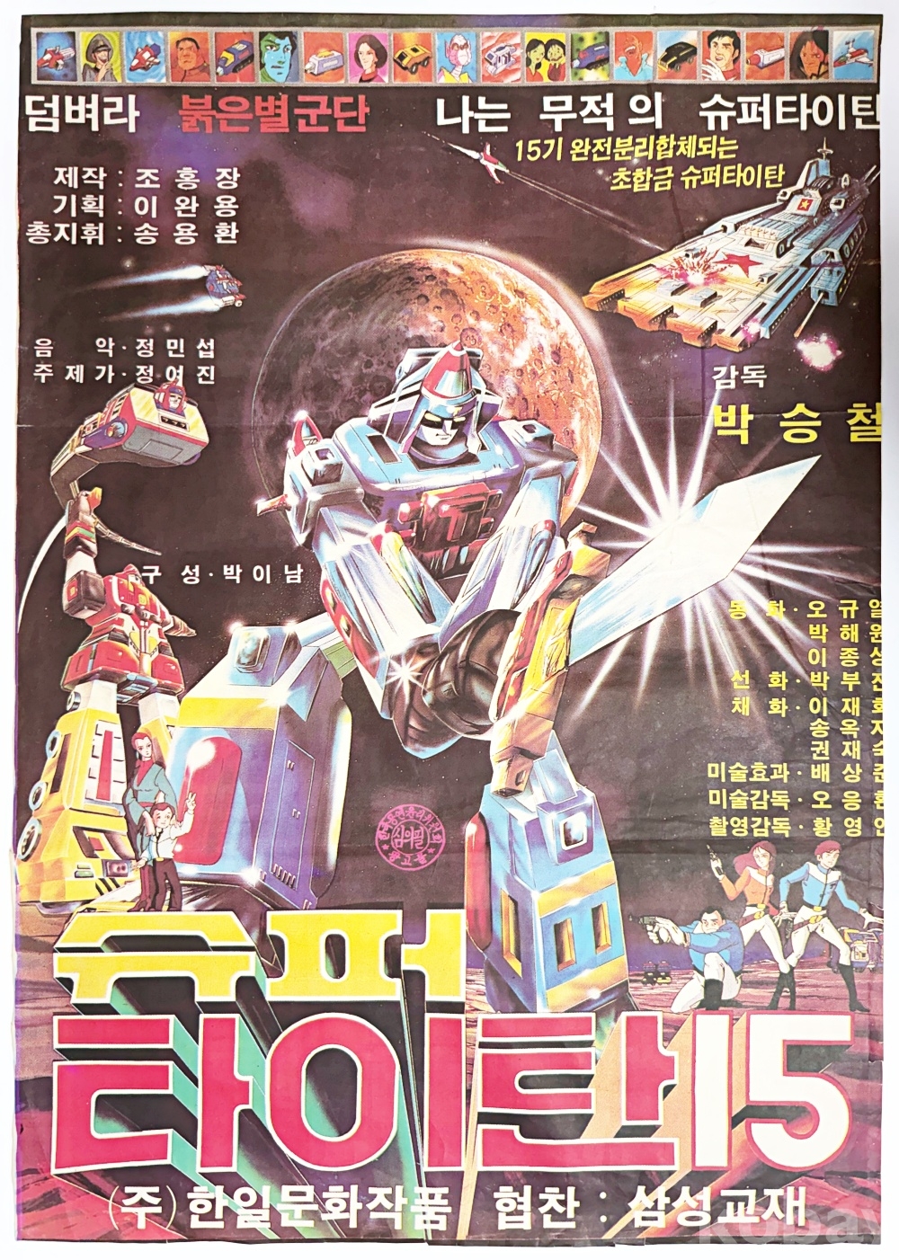 상품 설명 | 박승철 감독의 1983년 作 반공 애니메이션 '슈퍼 타이탄 15' 포스터이다. | ||