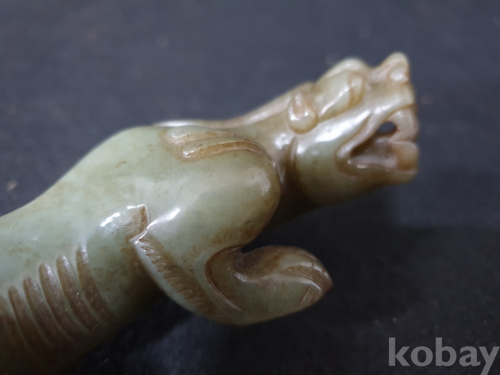 사이즈:높이:3.5센치.길이:14센치. 무게:324그람. 설명: 섬세하고 이쁜 기형의 출토 춘추시기 화전옥 표범상입니다.옥 재질이 상당히 좋고 귀합니다.상태 양호합니다.사진 참고 바랍니다.