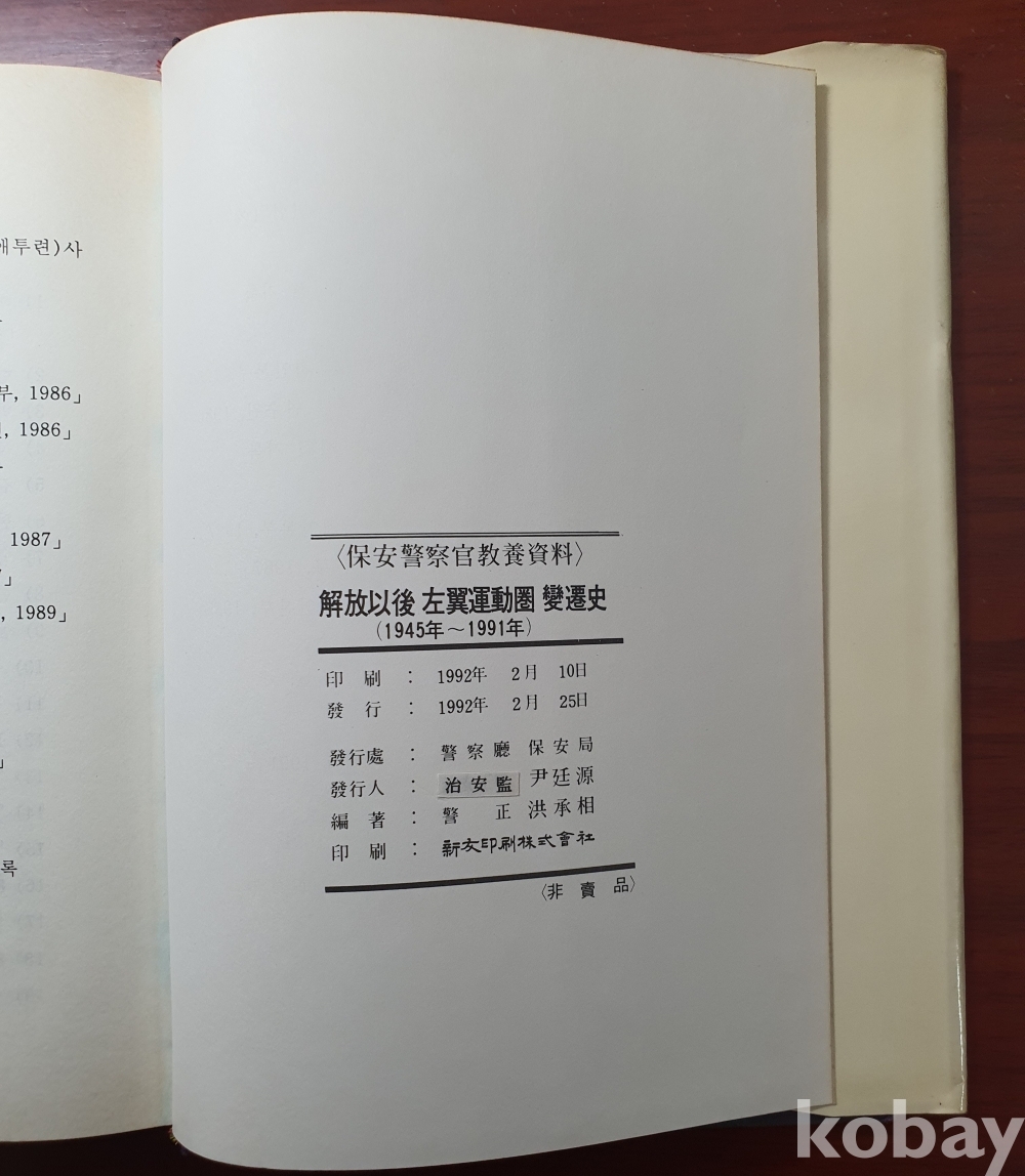 경정 홍승상,경찰청 보안국,1992년 초판,상태는 양호 깨끗한 책,하드커버