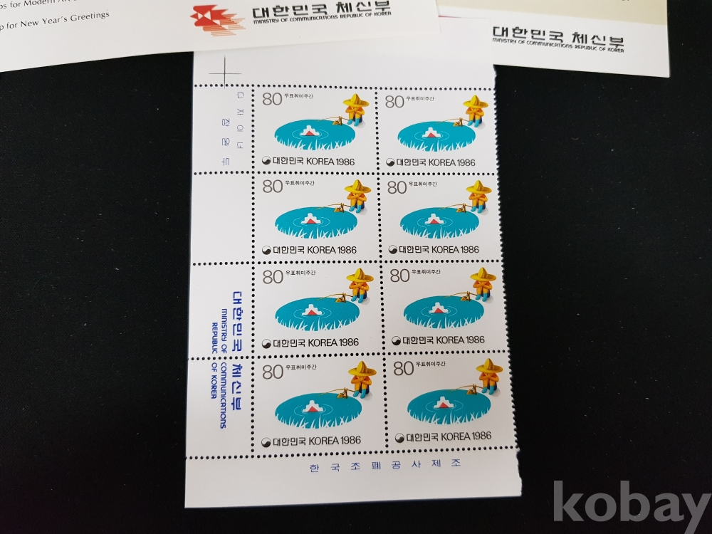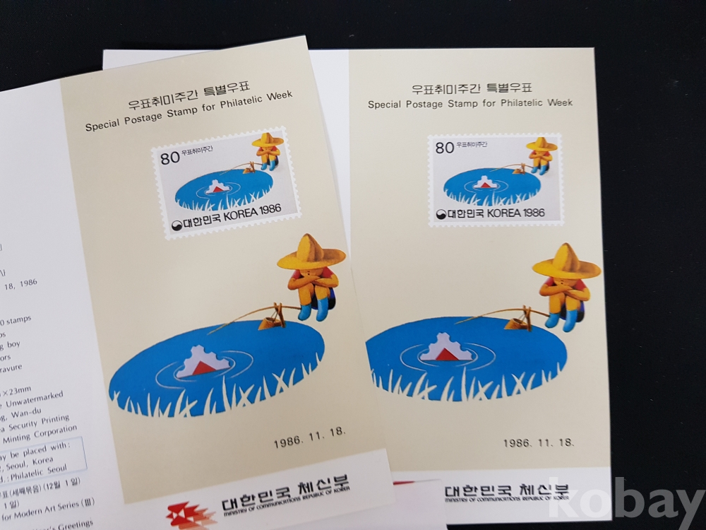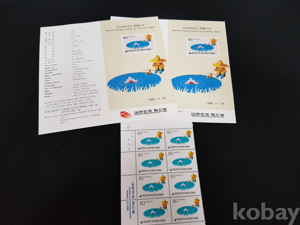 - 1986년 우표취미주간 안내카드, 초일봉피, 명판 등 모음