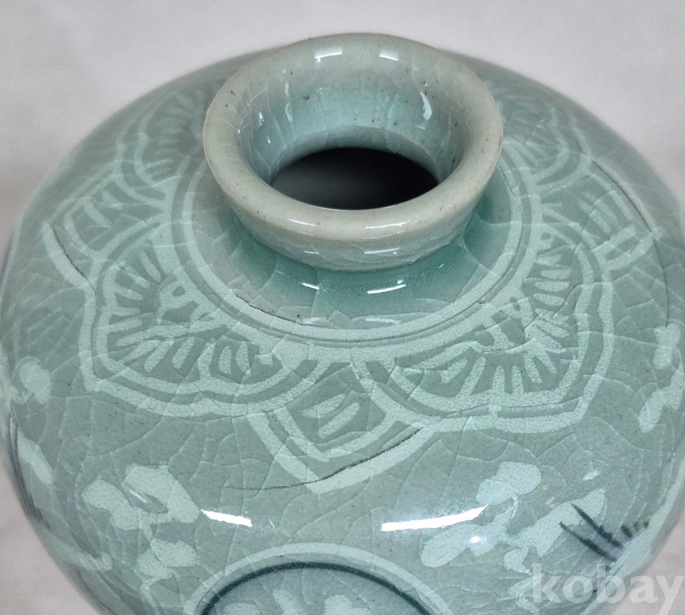 해송도예 청자매병이며 유,수리없이 상태좋습니다. 크기와함께 사진참고해주세요.