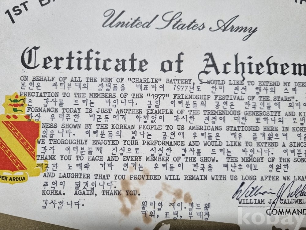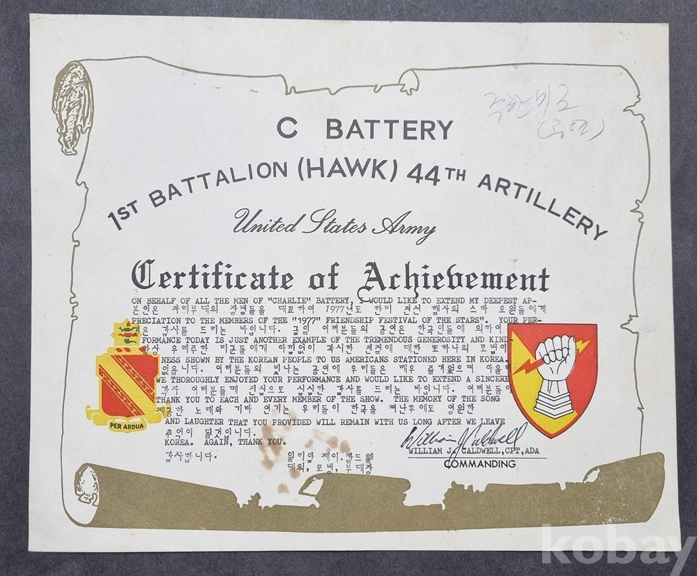 K-3 / 1970년대 후반 주한 미군 부대에서 한국인 협력자나 공연단에게 수여한 공로장