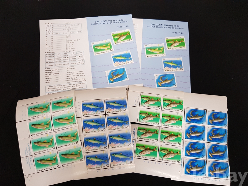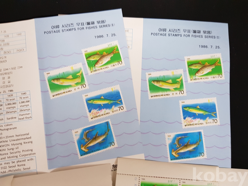 - 1986년 어류시리즈 제 2집 안내카드, 초일봉피, 명판 등 모음