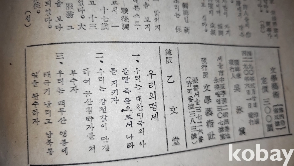 화가 박고석 표지화 그림이 함께하는 "문학예술" 1957년 발행입니다,