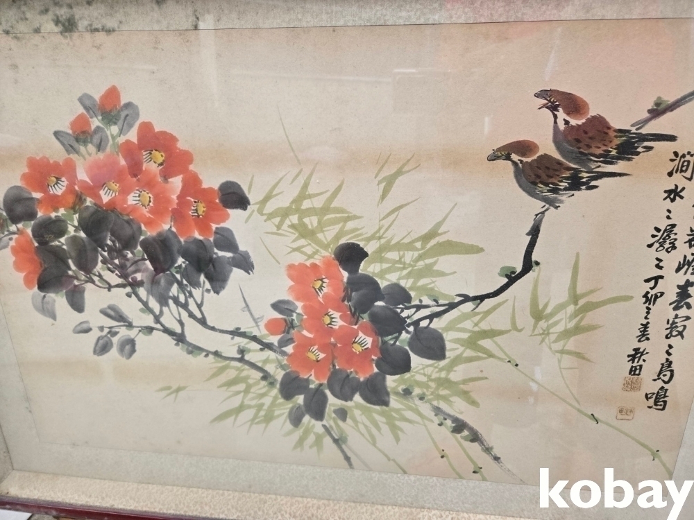 새와 꽃 그림 액자 입니다.