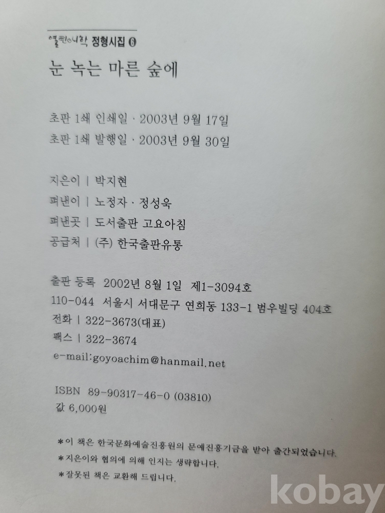2003년 발간한 첫 시조집 『눈 녹는 마른 숲에』