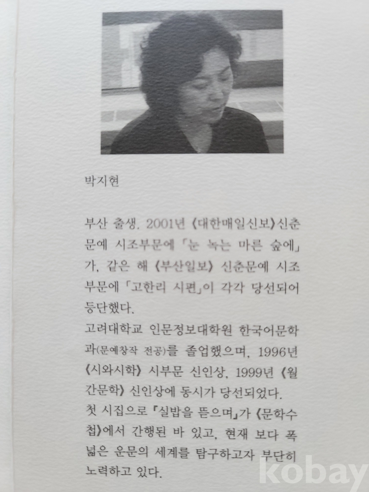 박지현(부산광역시: 1956) 처녀시조집.