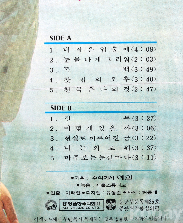 | 자켓상태 | EX : 약간의 마모, 모서리 찢김 존재 | 음반상태 | EX : 재생에 영향 없는 가벼운 기스 존재 | 발매정보 | 알수없음 | 가사지여부 | 무 |