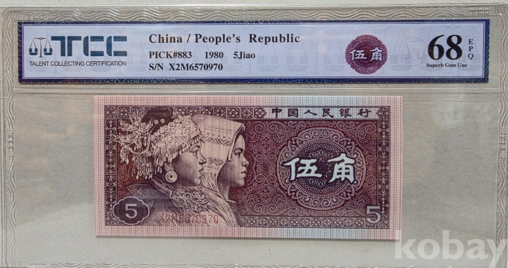 -1980년 중국 인민은행 발행 5각 지폐 TCC68 고등급 입니다.