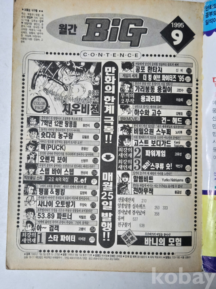 육영재단 발행 = 월간만화 빅보물섬 == 1995년 9월 발행 = 특별별책부록 .바니의 모험