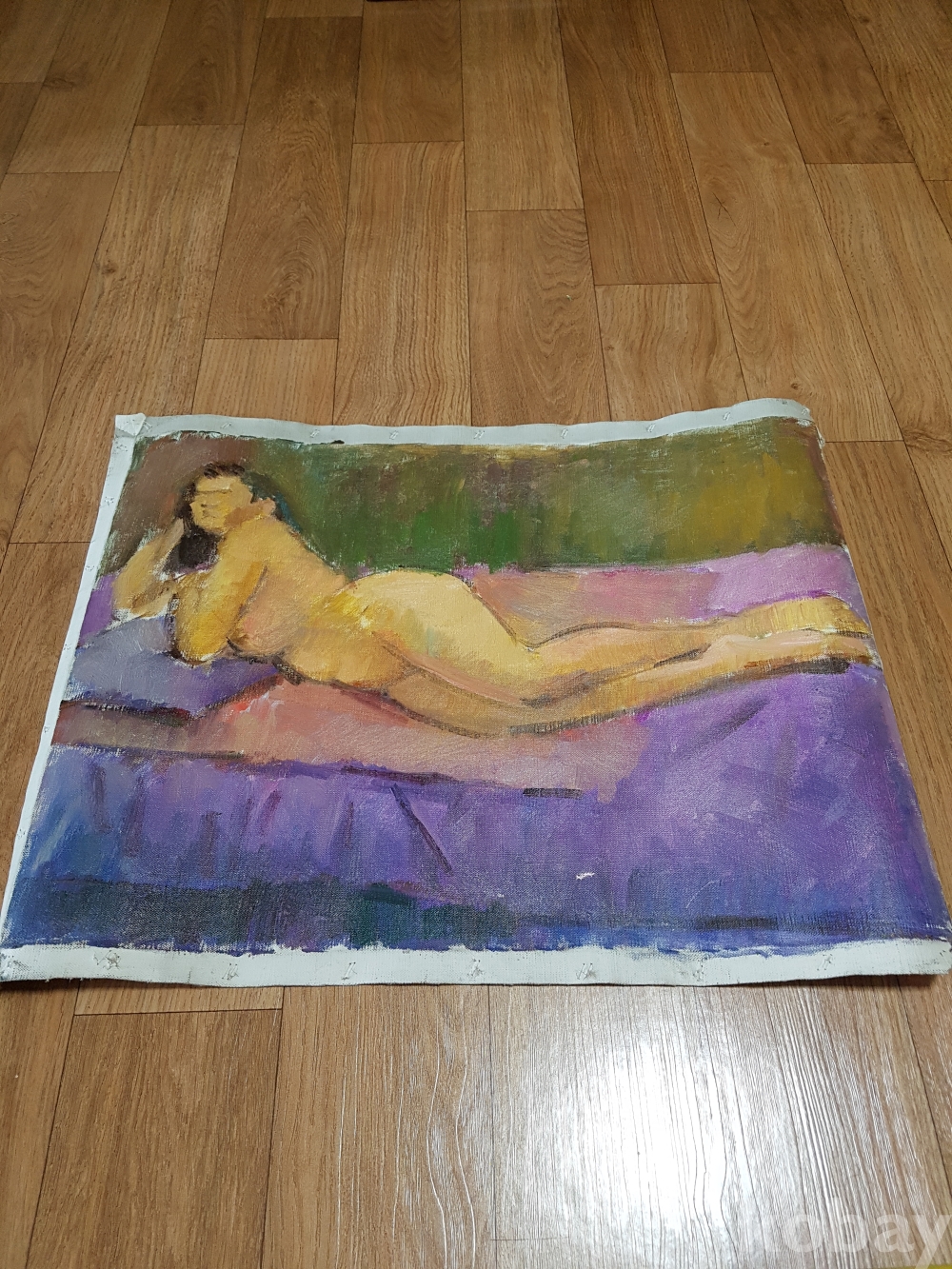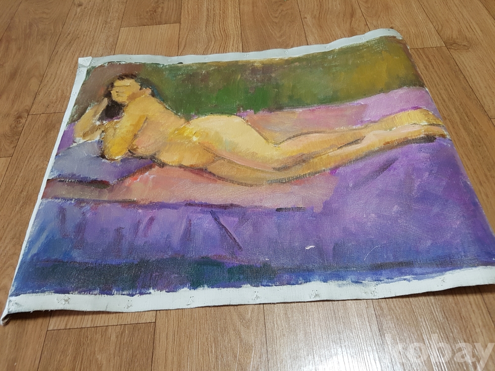바닥에 누워있는 나부 유화 1점