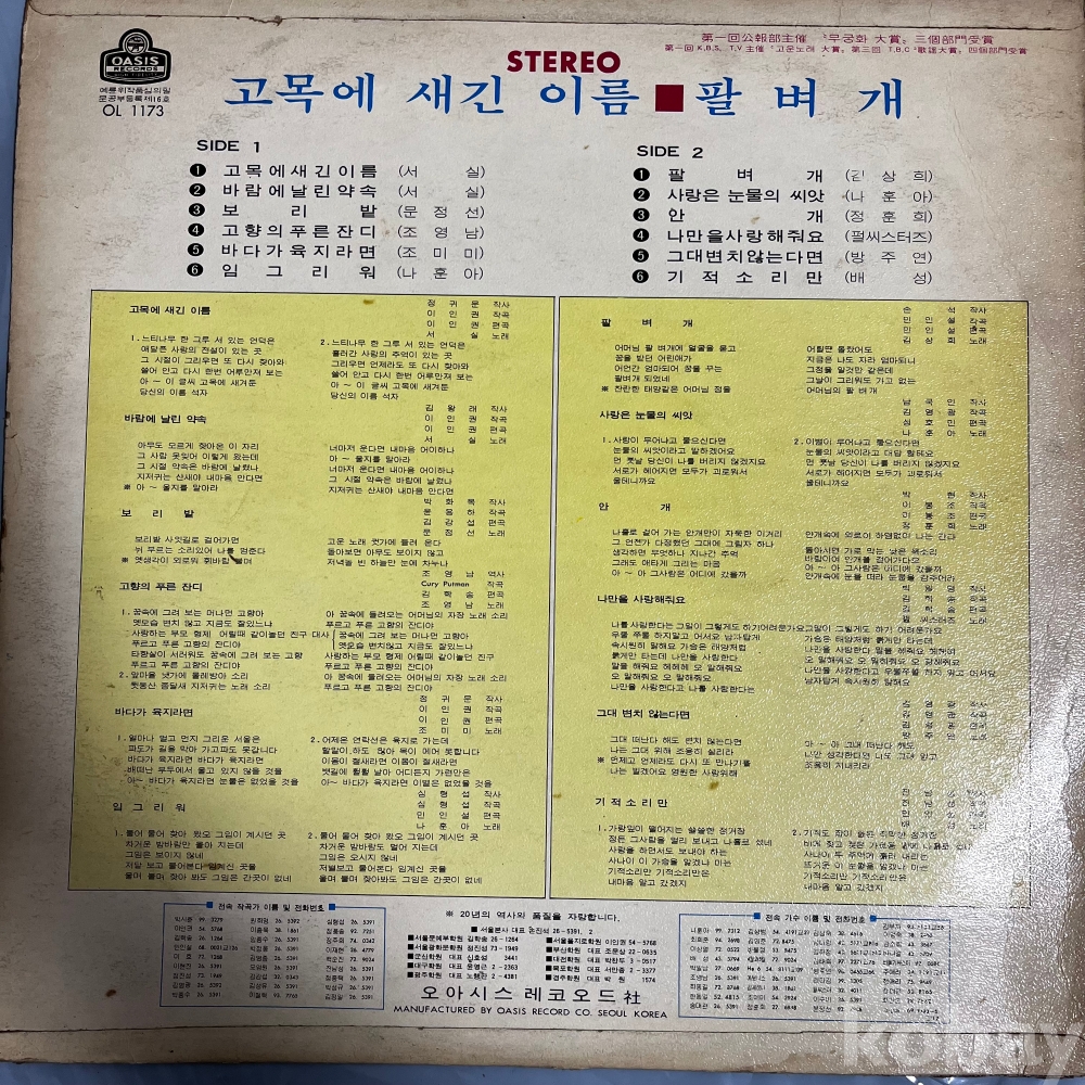 1972년 오아시스 레코드사에서 발매된 희귀 음반입니다.
