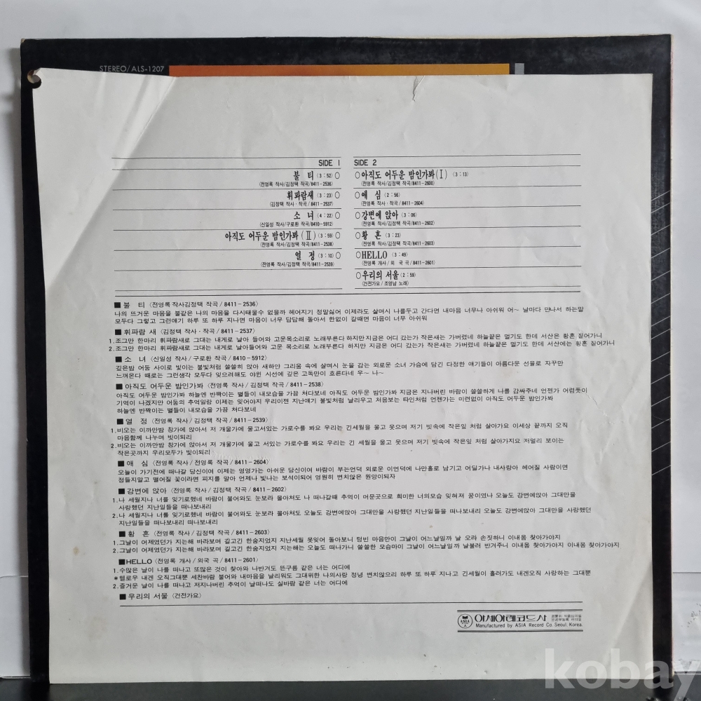 . 오래된 음반들은 잡음이나 튐 현상이 있을 수 있으니 사진 참고 하시고 신중한 입찰 부탁 드립니다.