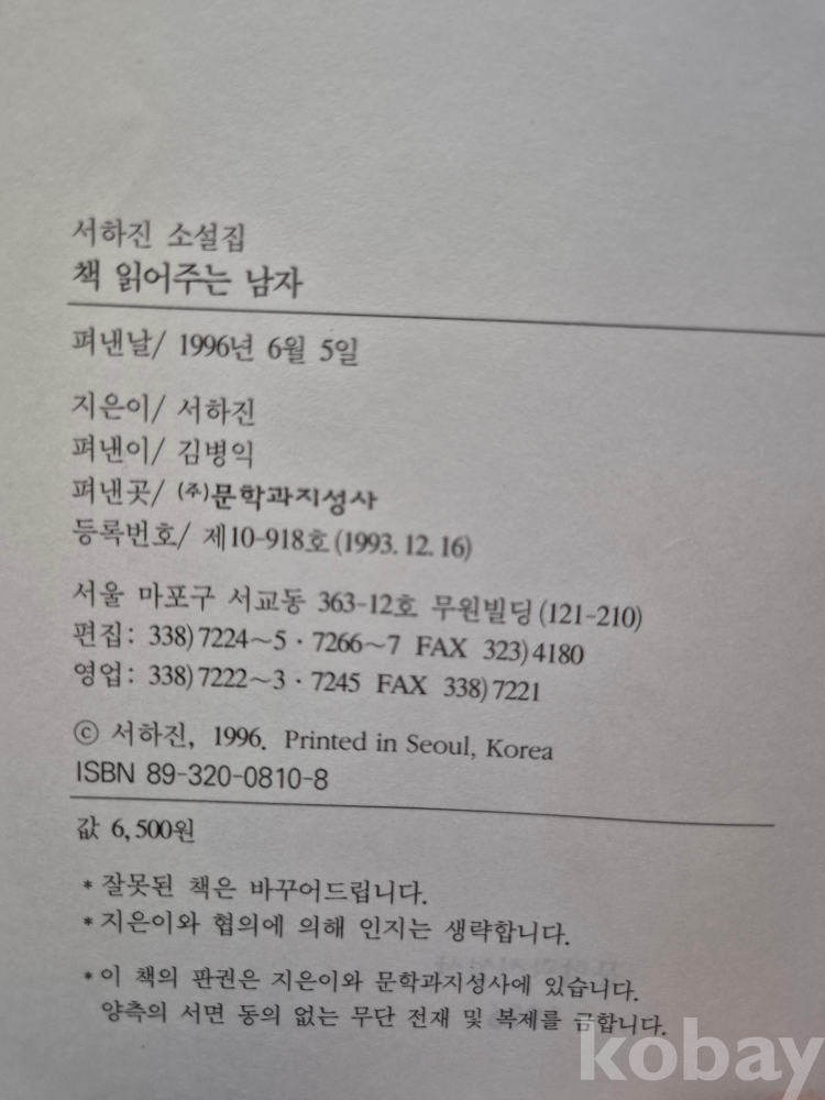 1996년 발간한 첫 소설집 『책 읽어주는 남자』