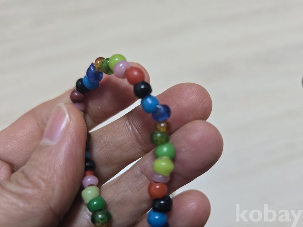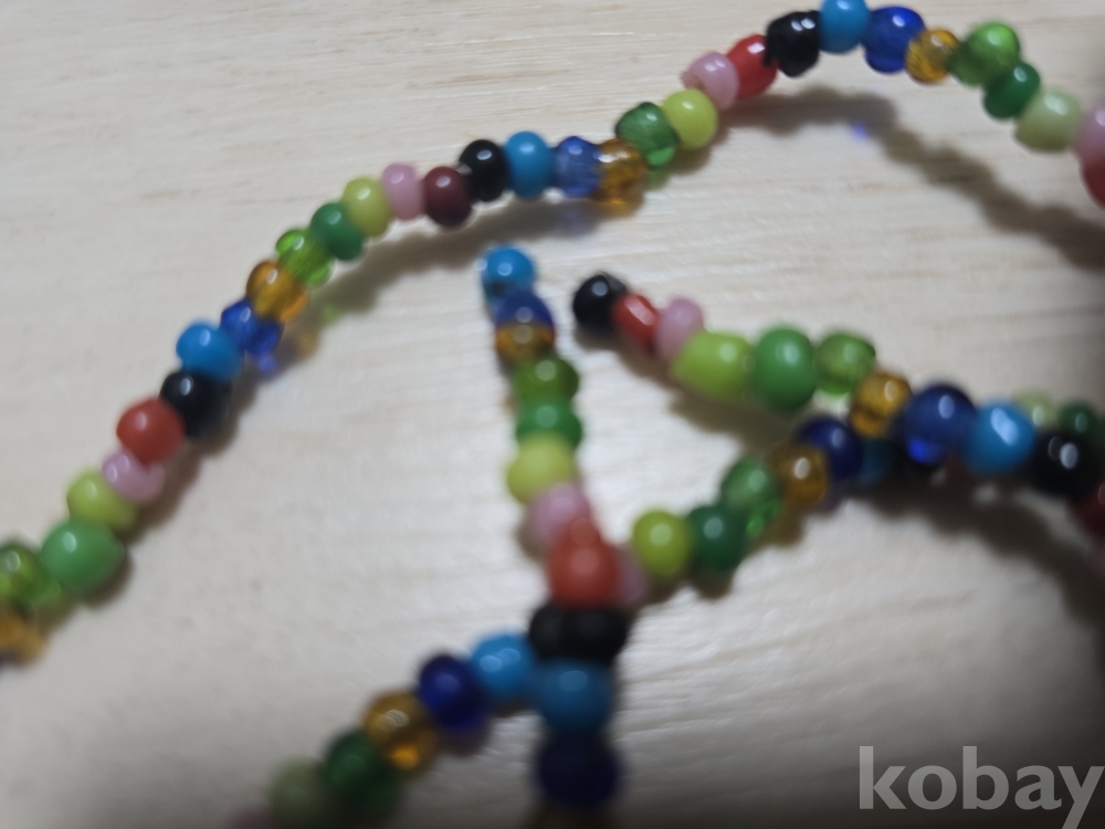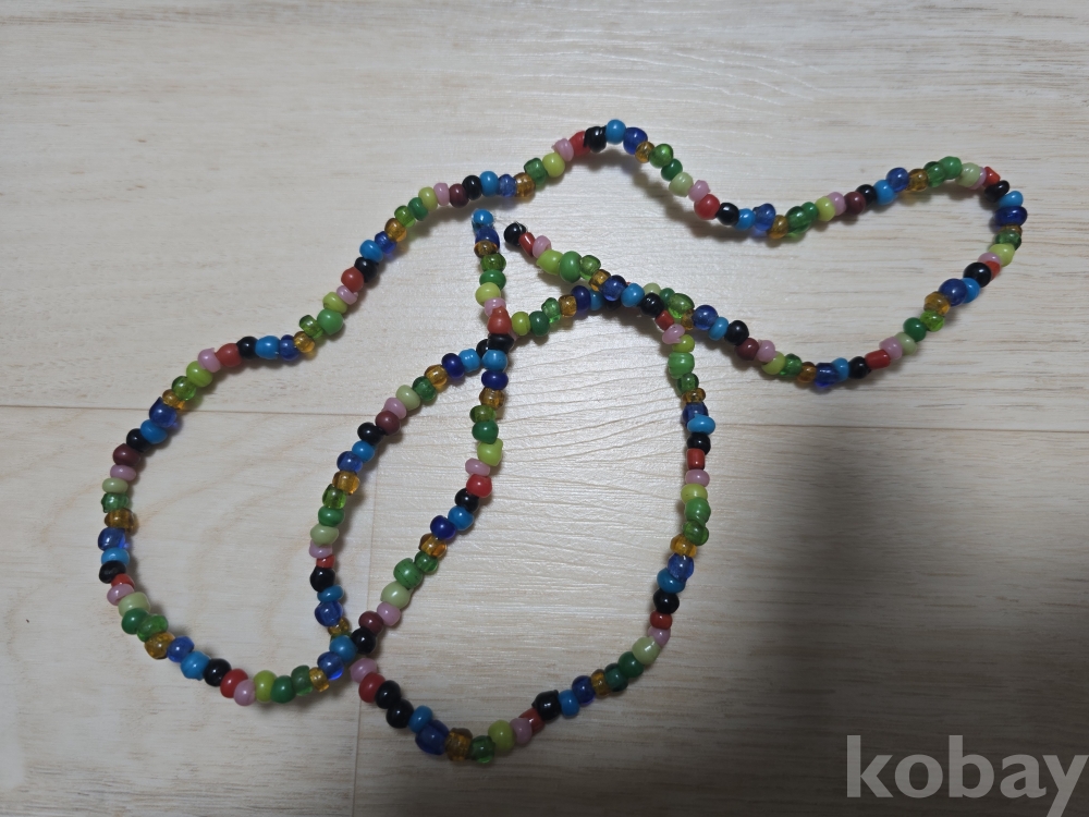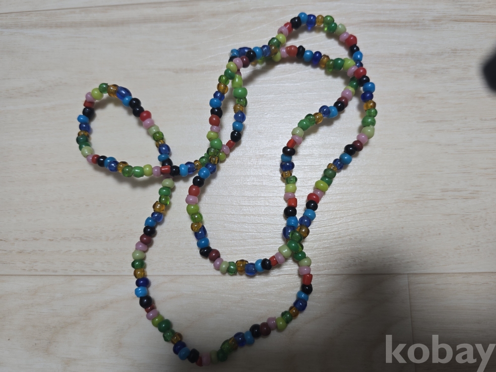 연대가 오래돼 보이는 다채로운 색상의 목걸이입니다.