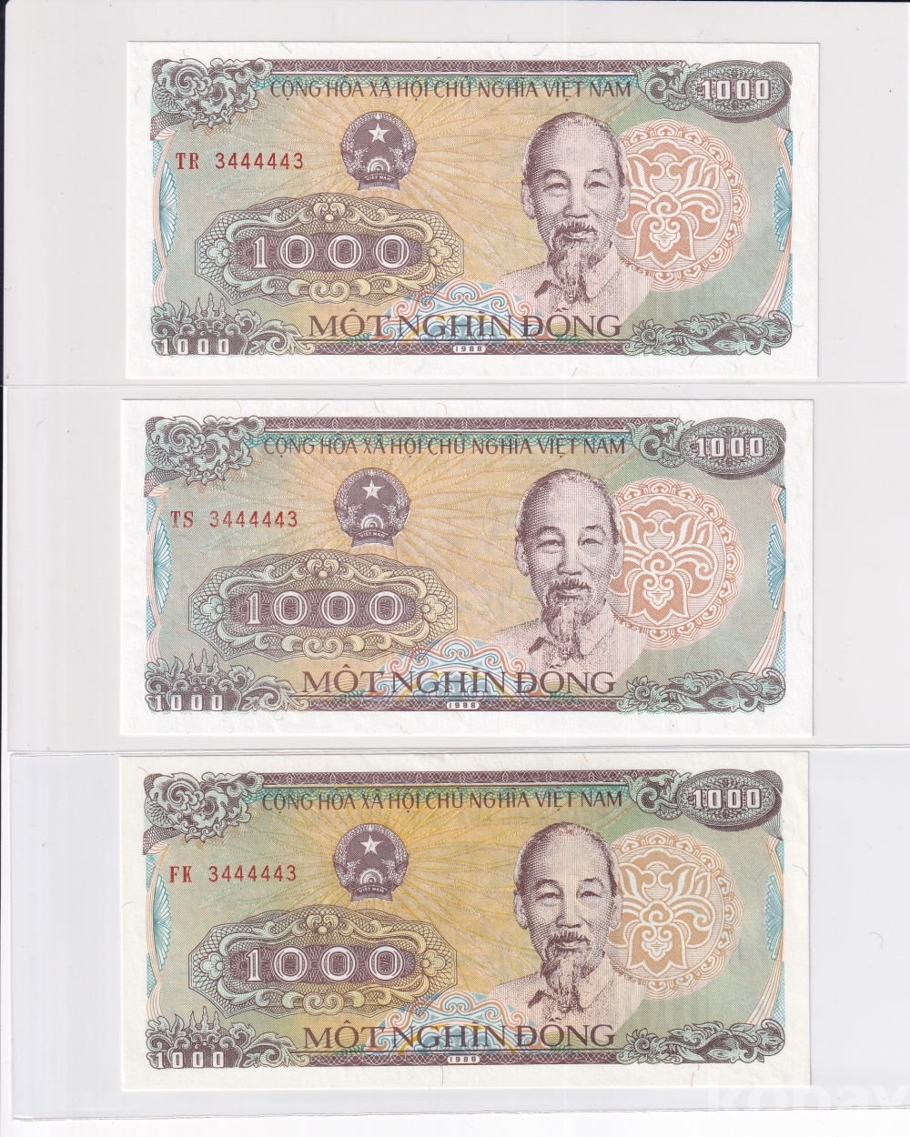 [베트남 지폐 특이번호 모음展] 1988년 1000동 3 44444 3 투 디지트 오봉 레이더 3쌍둥이
