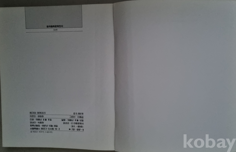 낙장 낙서 없음, 23~24페이지 일부 훼손표지 책등 완전아동동화문학전서319 반품불가반품시 반품비용 구매자부담조건 판매,사이즈는 정확하지 않음