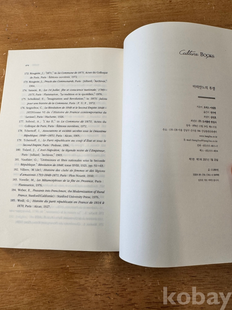 [세계사, 프랑스혁명, 알레고리] 모리스 아귈롱, 전수연 옮김, <마리안느의 투쟁>, 한길사, 2001, p. 414, 상태 중급(사진참조)