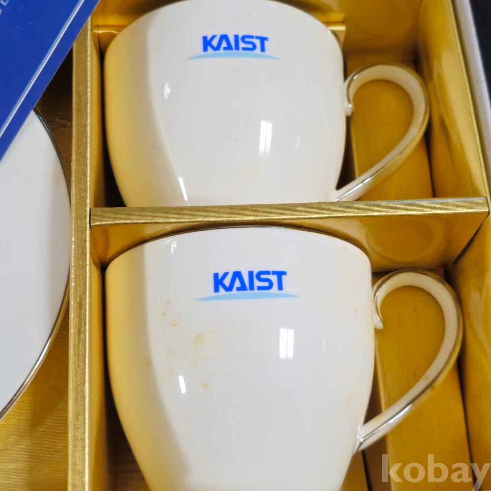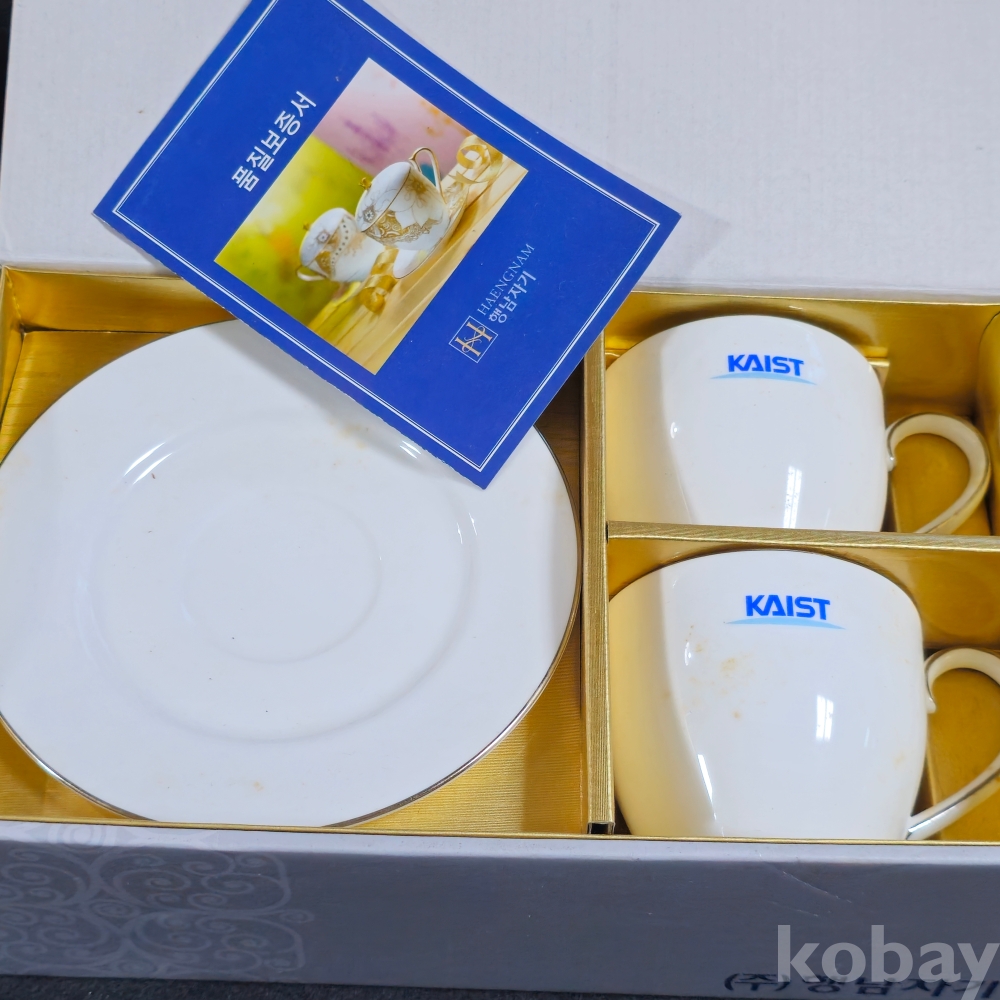(((군자료/도자기커피잔))) 오래전 KAIST (카이스트) 미사용 커플 도자기커피잔/잔받침 (행남자기)