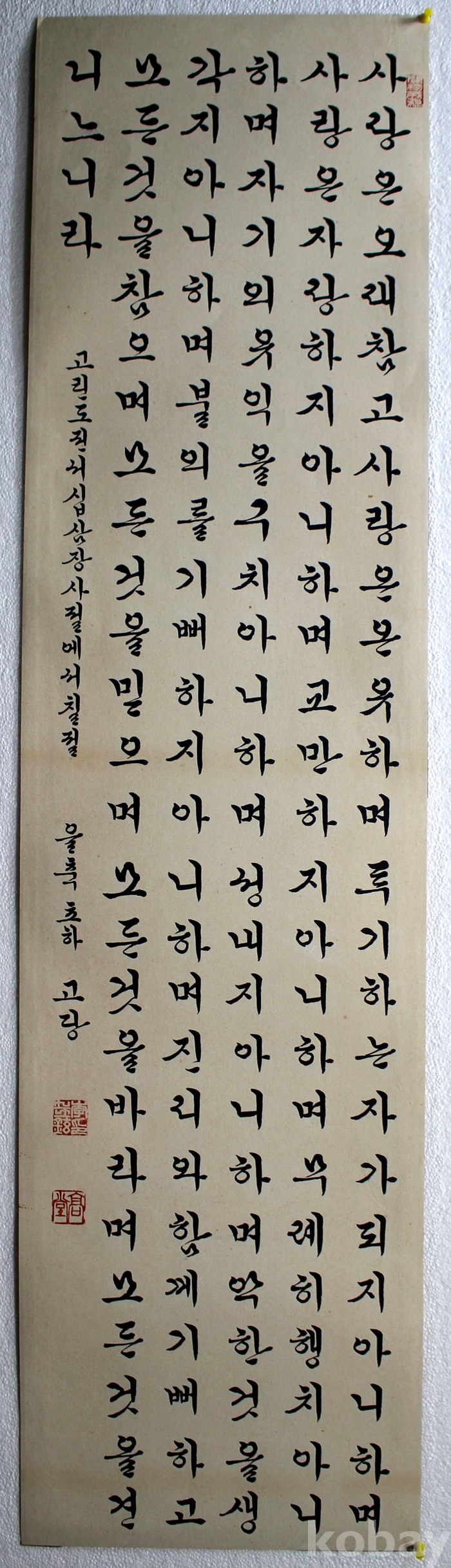 고린도전서 13장4절~7절의 글을 담은 高堂(고당)의 한글서예 ...