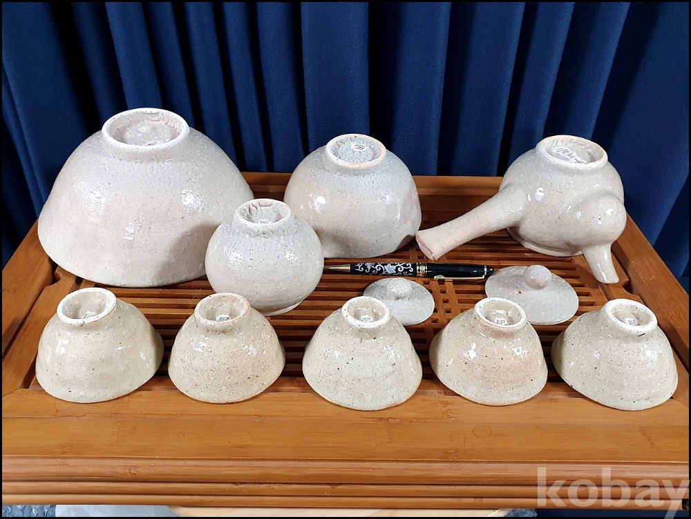 크 기; 다관19x15x11 숙우14x7 차호9x9 잔8.5x5 (단위 cm)