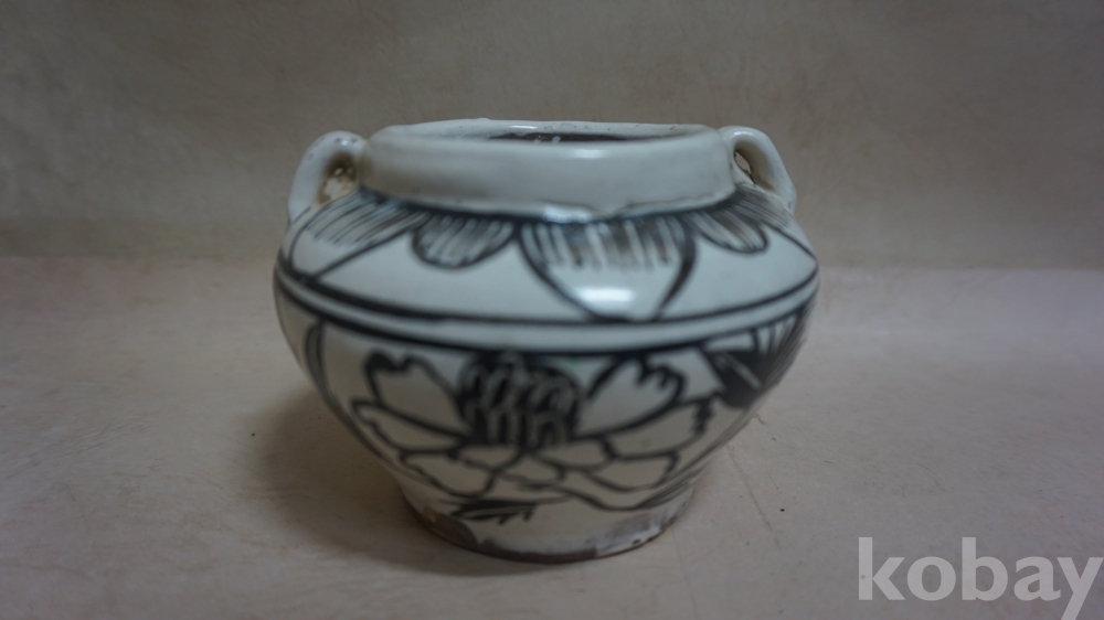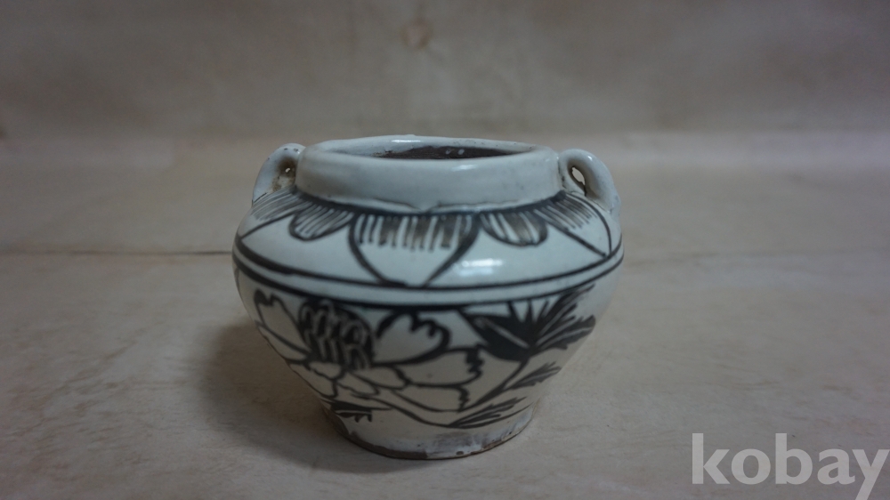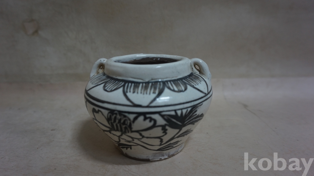 ◈◈민국시대../백자 양고리 철화,ㅡ''모란문,ㅡ''작은 단지 호 한점◈◈