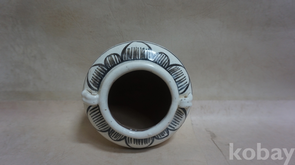 기타특징 ; 중국 민국시대 유물로서,◈백자.양고리 철화,ㅡ모란문,-작은 단지 호 한점◈ 입니다.- -기물 형태,문양 특이하고 안정감있게 잘 성형되었으며,..-''-먼, 옛시절 중국 인들의 삶의 흔적 과,ㅡ삶의 문화 와,ㅡ..삶의 희.로.애.락.들이 담겨진.!...-상당히 흥미롭고 형태 특이하고 재미있는, -..-◈※♥민국시대../백자 양고리 철화,-모란문,-작은 단지 호 한점♥※◈입니다....-기품 있고,기물 형태 또한 잘 생겨으며...- ..-◈※★기물 형태 특이하게 잘 성형되었으며,..-''앙증미 넘치는 몸통 양 외벽 양 고리 아래 철화,해바라기 꽃 문양의 조화,!..-''몸통 한쪽 외벽에는 철화 두줄 원, 문양 아래 힘있고, 섬세하게 잘 시문된,ㅡ'' 모란 특이 문양의 조화,!..미,!!...-또한 상당히 흥미롭고, 형태 특이하고 문양 재미있는,ㅡ''◈※◈민국시대../백자 양고리 철화,-모란문-작은 단지 호 한점◈※◈ 입니다....-몸통 외벽에는 작가의 낙인이 수결되어 있습니다......-/전체적으로도 형태 및 자세 좋습니다..--/◈※★ 보존상태 완전하고 좋습니다,만..그림 처럼, 몸통 한쪽 외벽에는 미세침 맞은 자국 티 1 있습니다.만,(발국 할때 침 맞은 미세 티 자국으로 별 무리 없이 보임니다.만.)..외 먼,ㅡ세월의 흔적 유...그 외 상태는 사진을 참조하시되 양호 합니다. --★ 항상 건강 하시고 가내 만복과 함께 늘 행복 하십시요!!...좋은 안목으로 구매자님께서 잘 관찰하시고 좋은 기회 되시길 바랍니다.