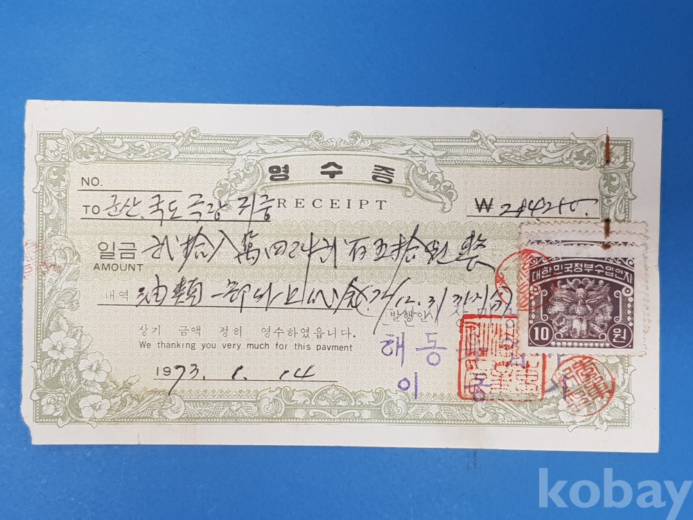 **** 군산국도극장 영수증/수입인지 10원 3매첩부