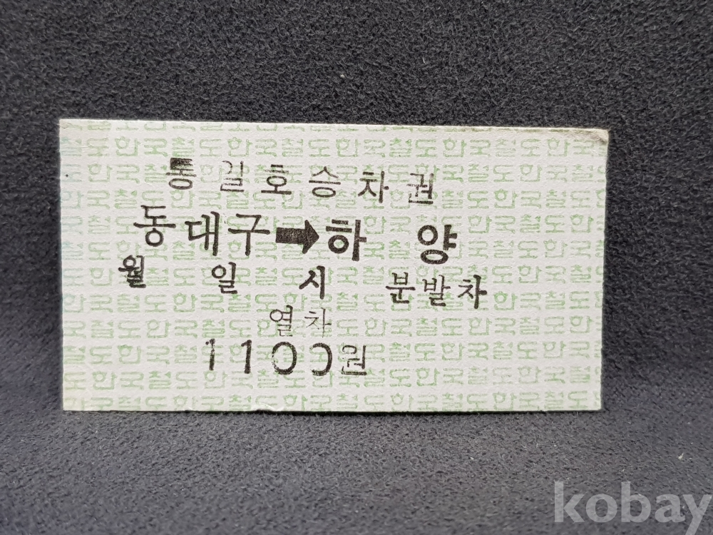 - 미사용 통일호 승차권 " 동대구 ▶ 하양 " 1100원