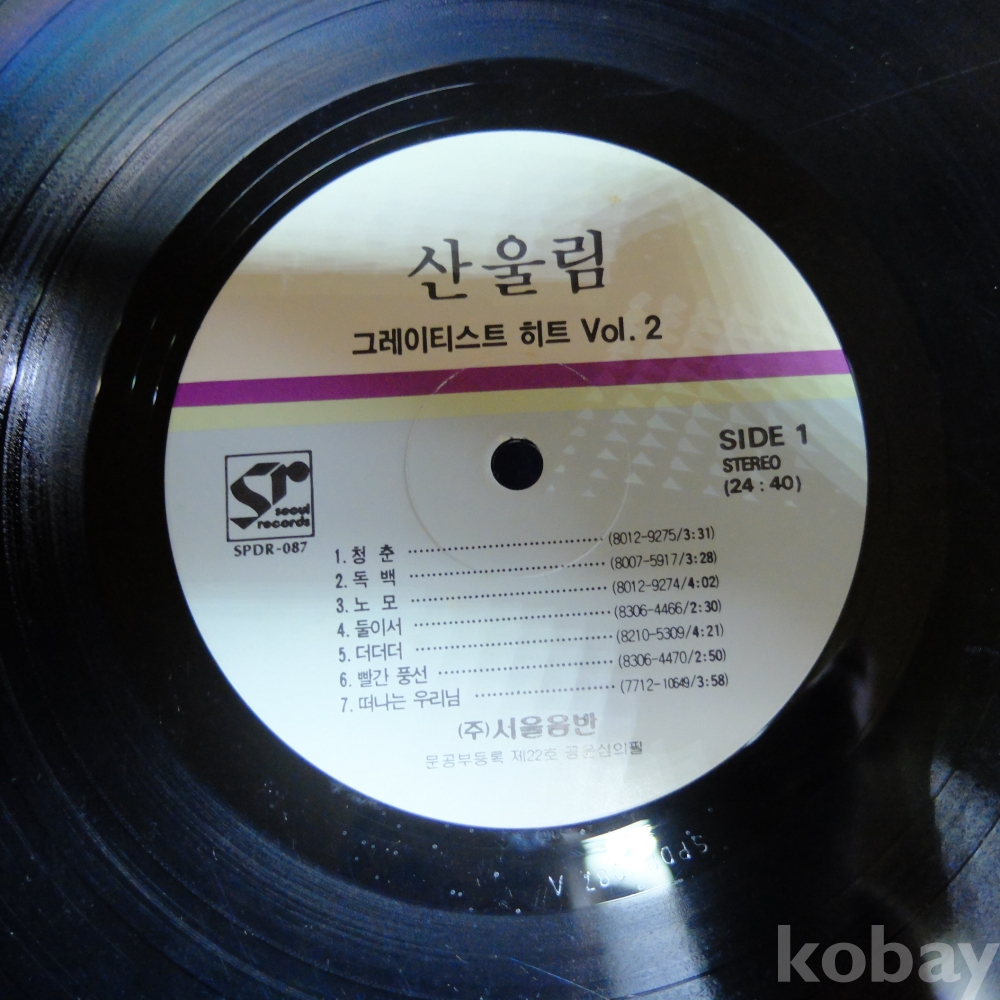 | 자켓상태 | VG : 주름, 접힘, 모서리 찢김 다수 | 음반상태 | G : 눈에 띄는 스크래치, 튐 또는 노이즈 발생 | 발매정보 | 초반 | 가사지여부 | 무 |