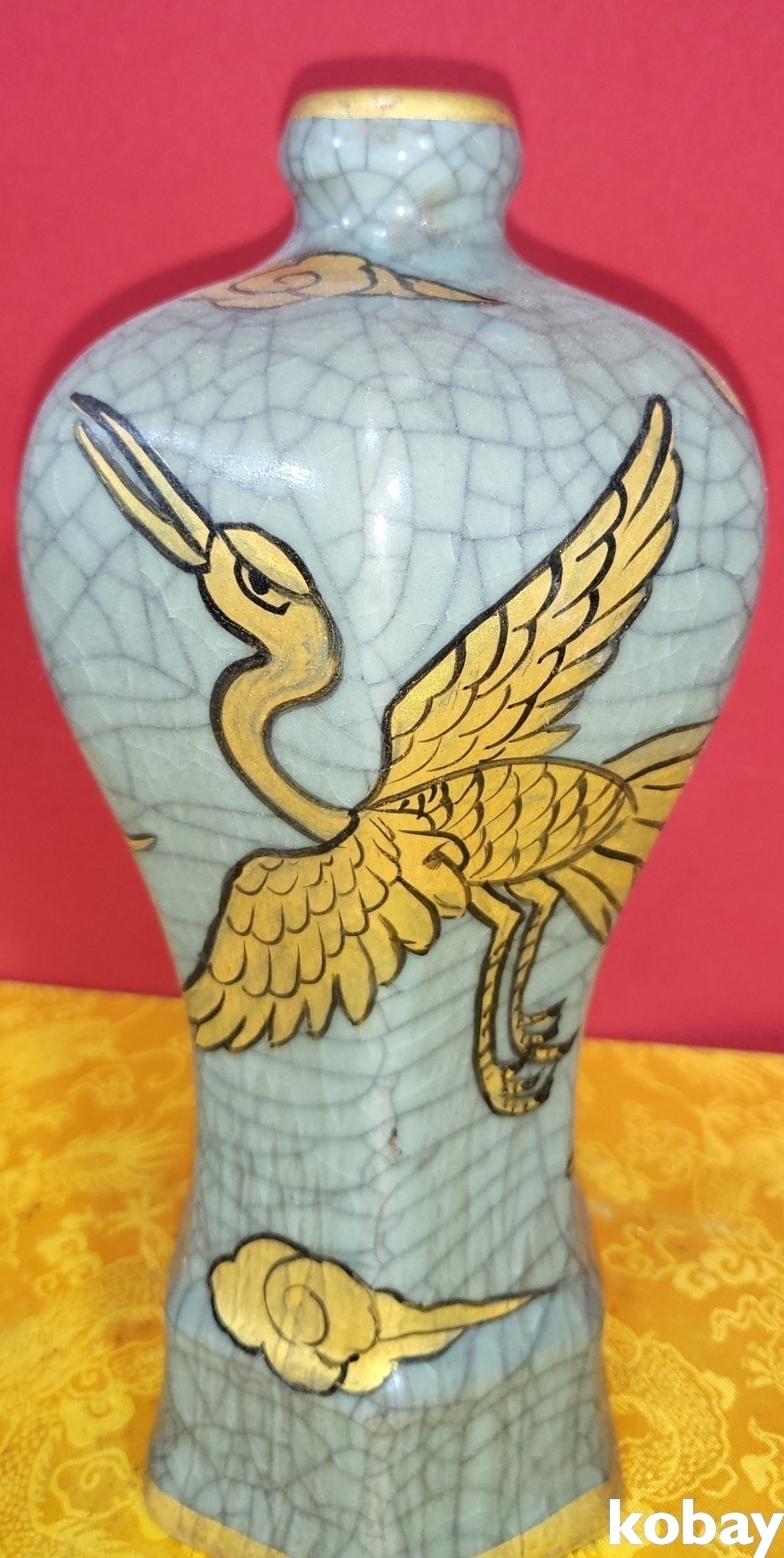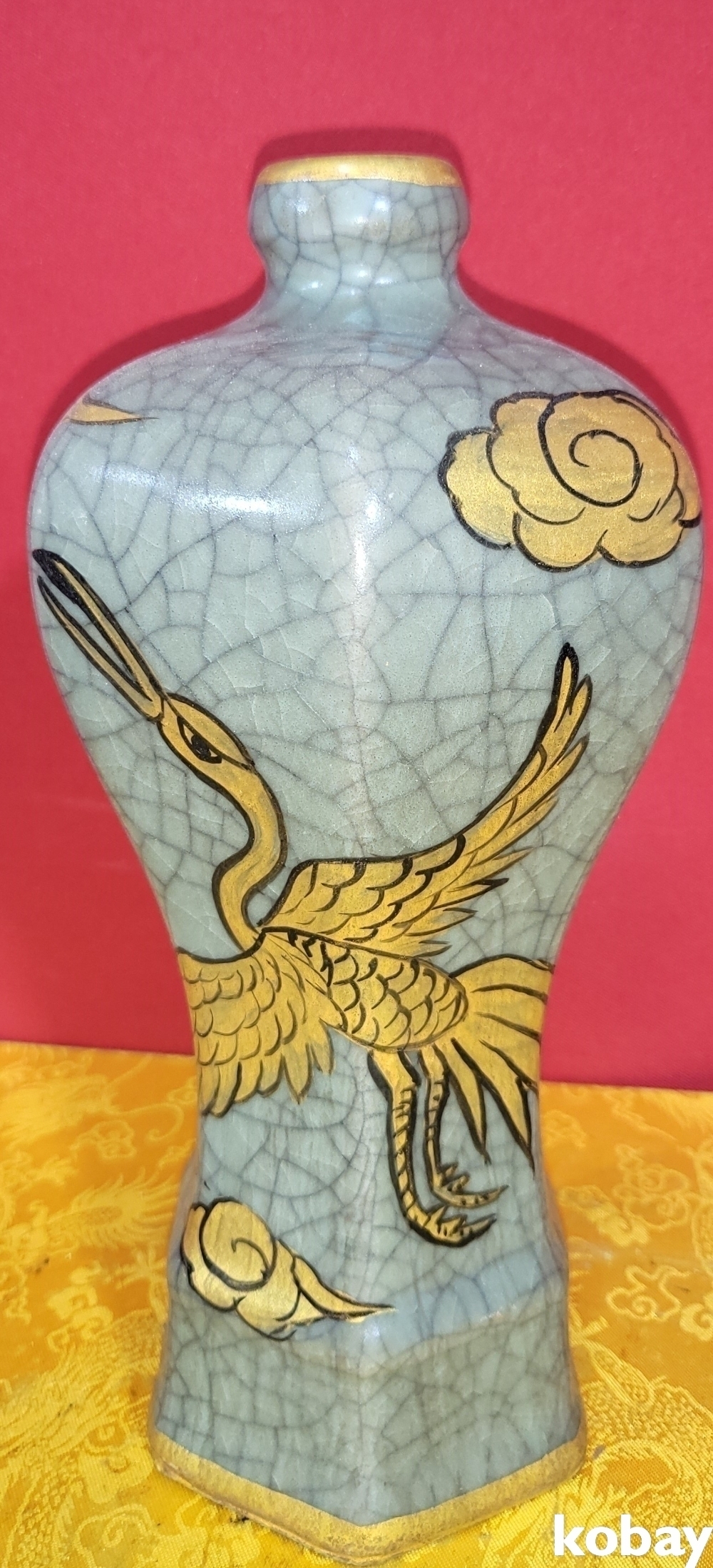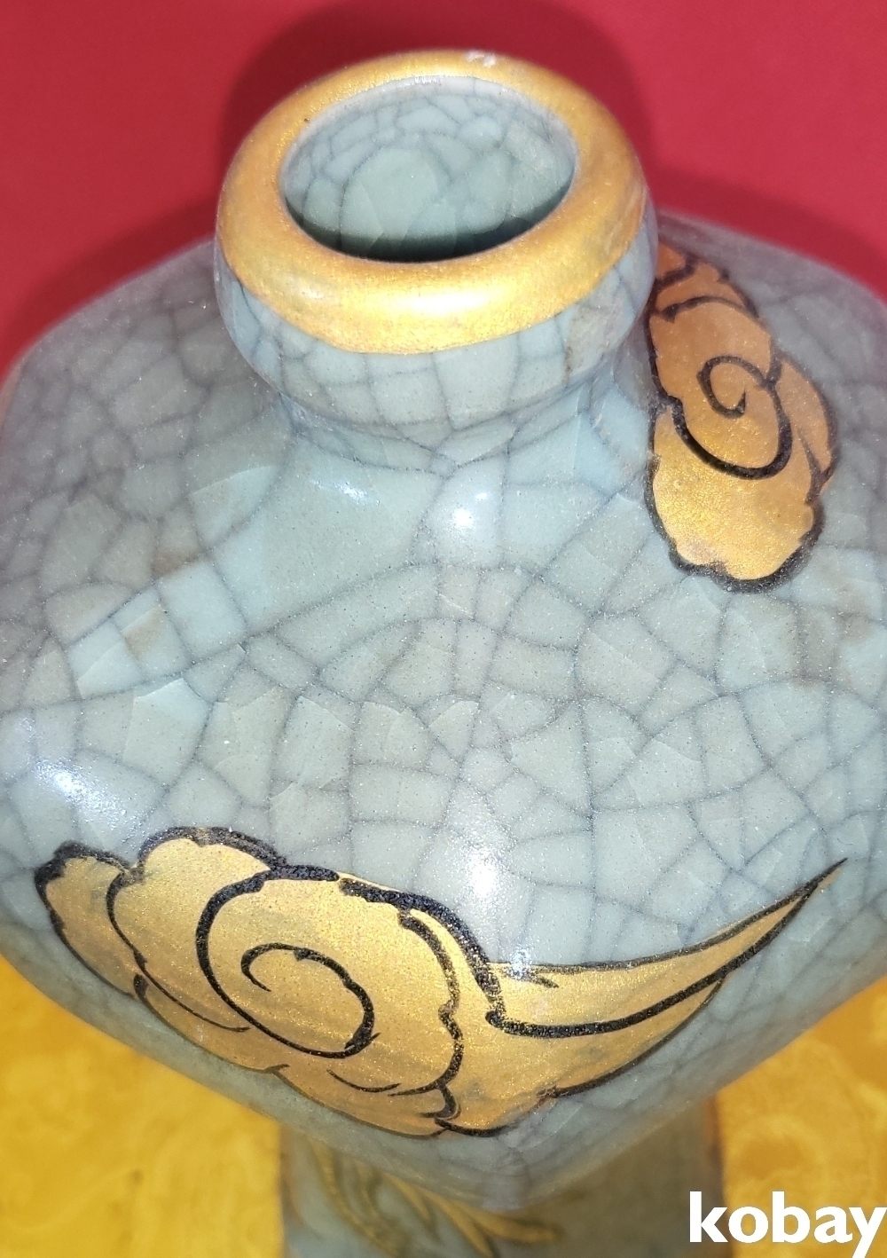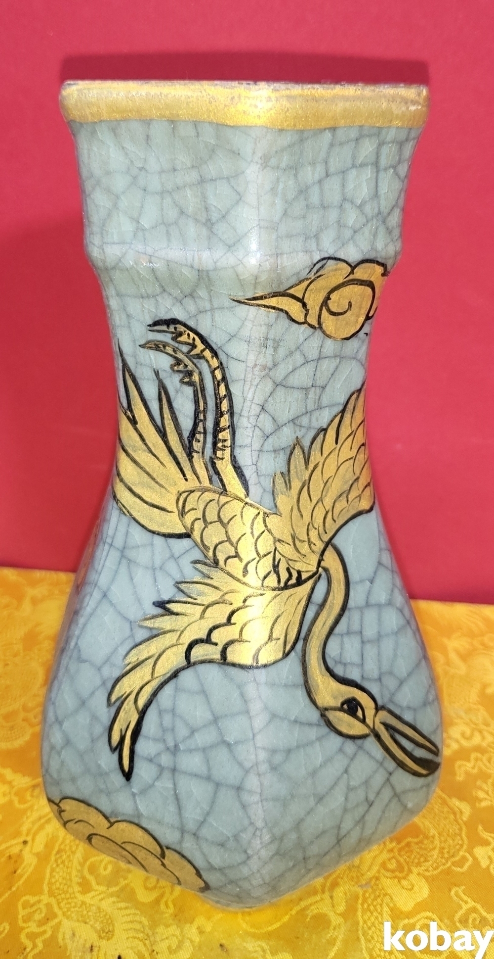 빙렬이 만개한 금채 운봉(雲鳳)문양 6각 병입니다,