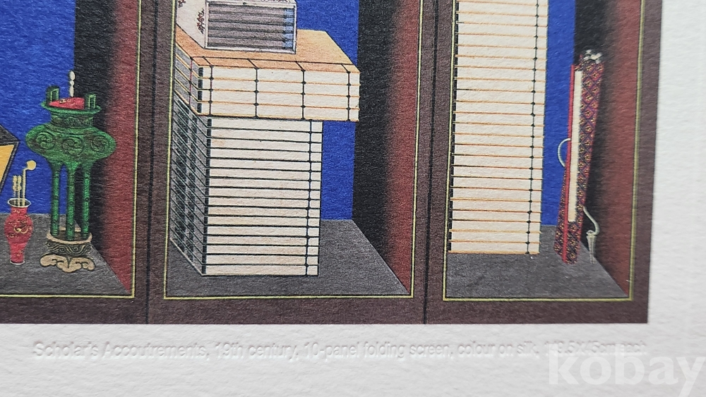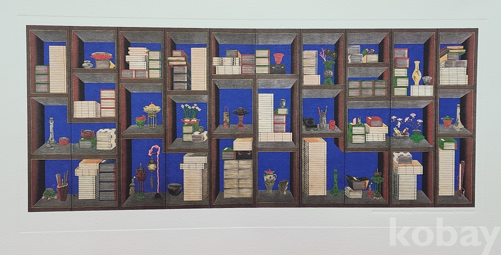 Kㅡ이백 53차 내5좌측번 /// 한국의 채색화 책가도(冊架圖) 압인(壓印)판화입니다,