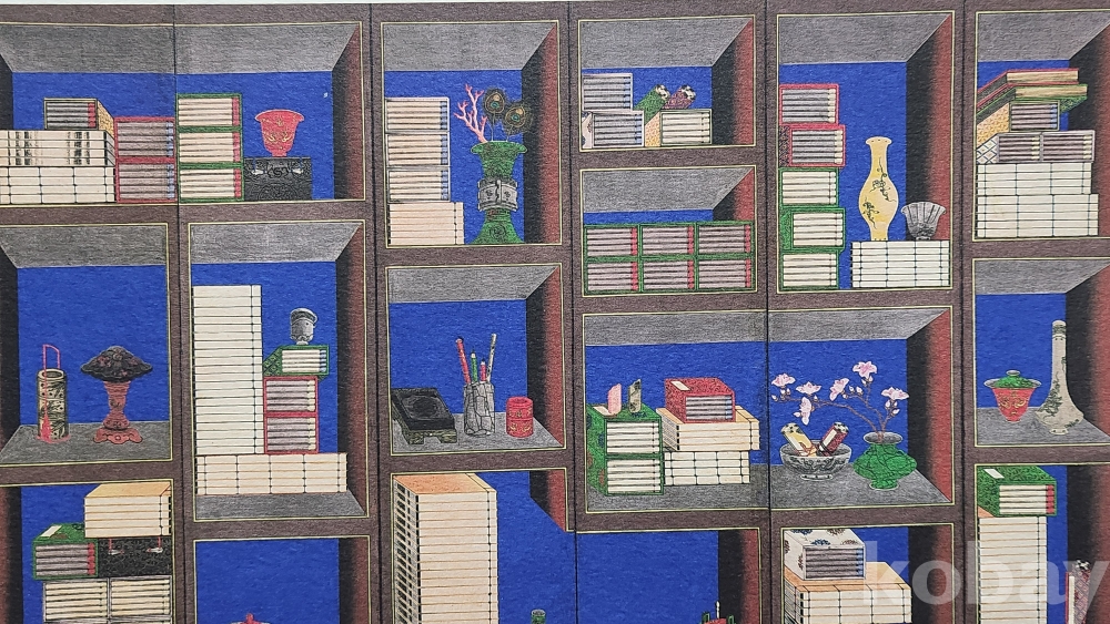 책가도(冊架圖)란 조선시대 민화 중 하나로, 책을 비롯한 여러 사물들을 그린 그림이다.