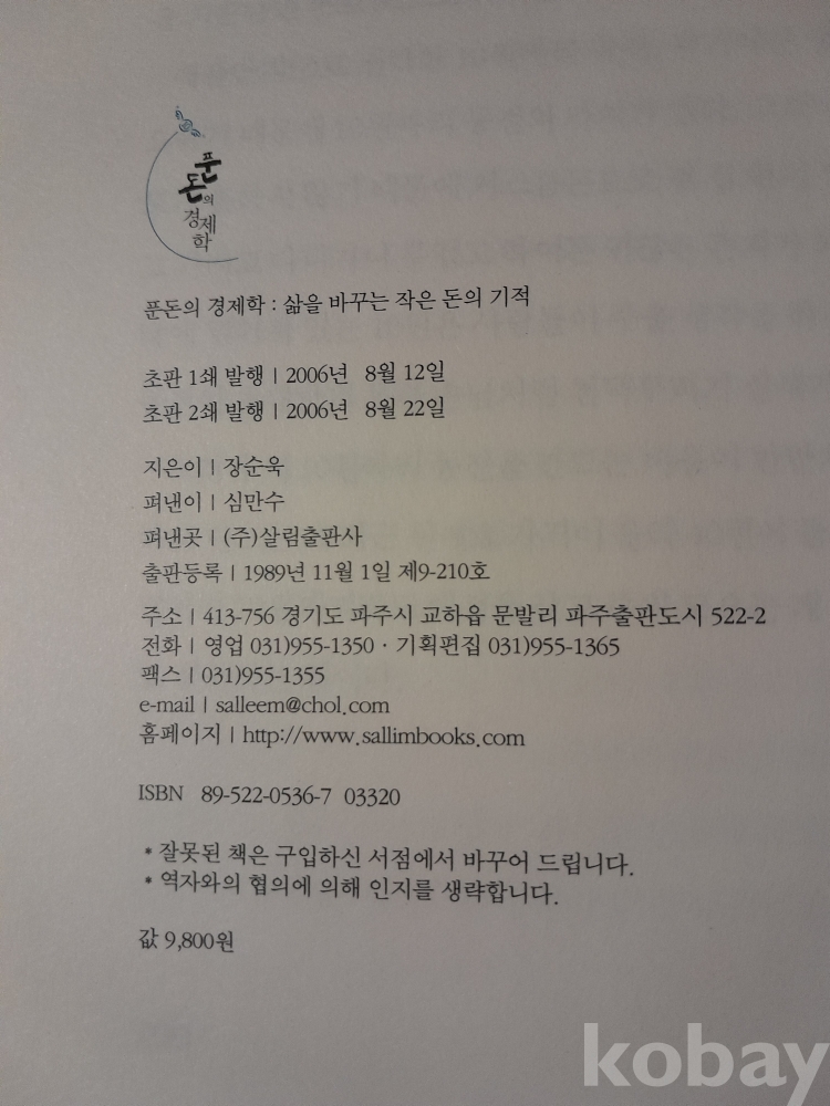 [ 푼돈의 경제학 ] 삶을 바꾸는 작은 돈의 기적 / 장순욱 지음