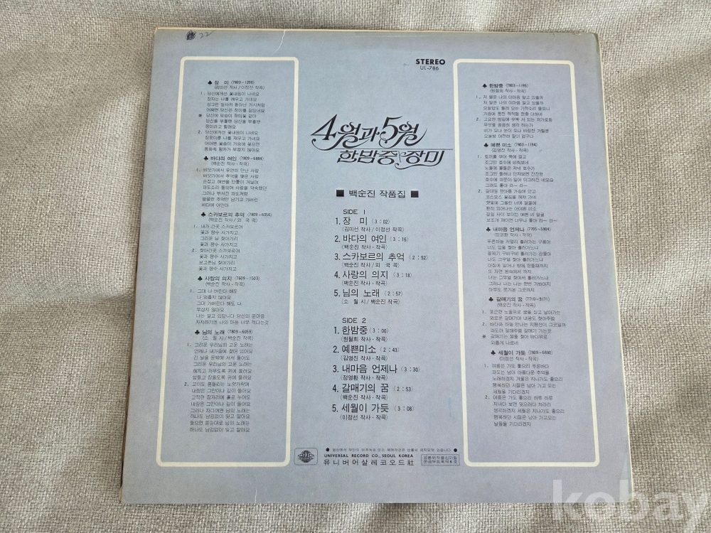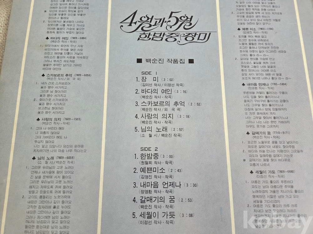Side B 1. 한밤중, 2. 예쁜미소, 3. 내마음 언제나, 4. 갈매기의 꿈, 5. 세월이 가듯