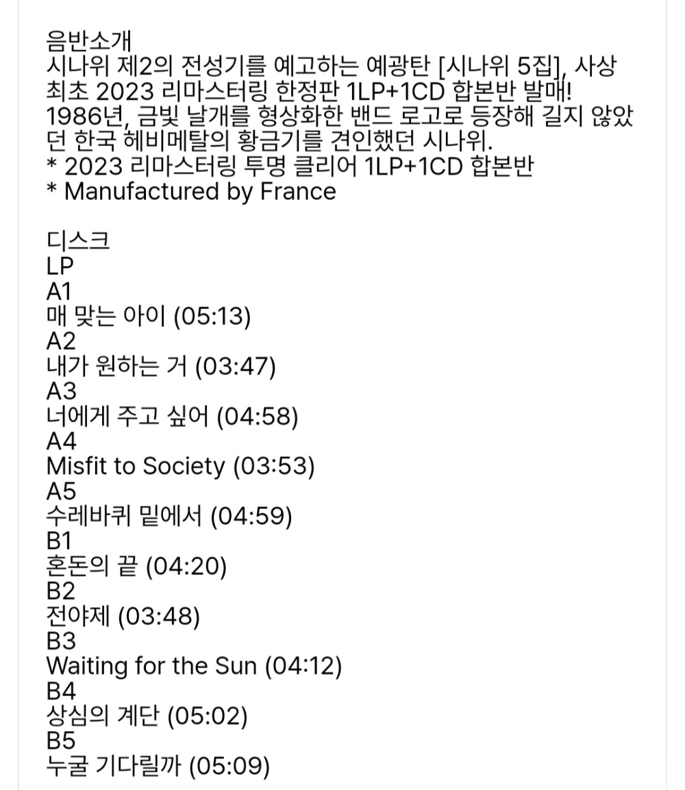 시나위5집 미개봉LP+CD