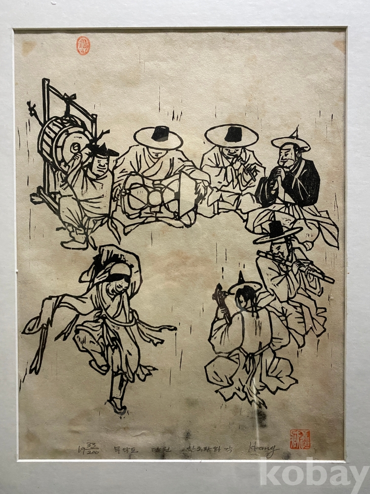 "무악도(舞樂圖)"를 바탕으로 제작된 판화 작품입니다.