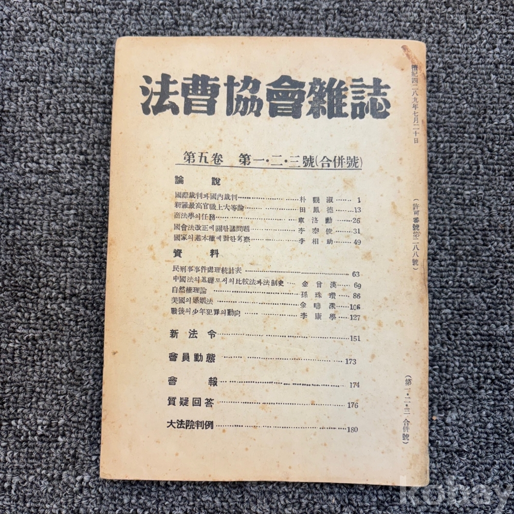 [한국현대사, 제1공화국, 사법] 법조협회 편집부, <법조협회잡지 제2권 1,2,3호 합집(1956년 7월)>, 법조협회, 1956, p. 196, 상태 중급( 사진참조)