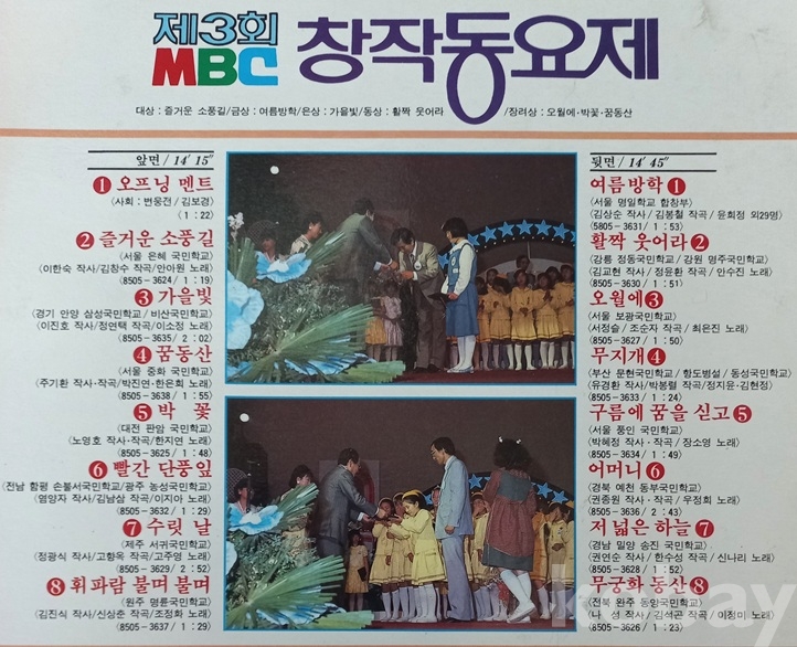 옛날 추억의 동요, 이젠 거의 사라진 골동반입니다. 창작동요제 음반은 더 귀한것 같읍니다. 참 올드합니다. 앞에 같은 창작동요제7집반이 올려져 있으니 같이 봐 주세요. 따로 옛날 국민학교 음악교보재로, 창작동요제로 수집해 볼 좋은 기회가 되었으면... 상태는 앞에것과 함께 두장 다 너무 좋고. 저는 그냥 수집만 하다보니 짐스러워 정리차원에서 올립니다 계속 올리려고 하는 만큼 지켜 봐 주시고.