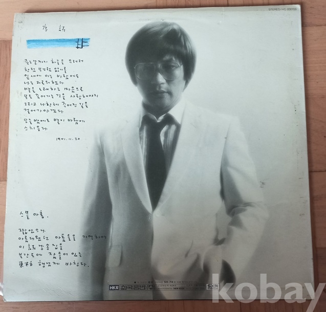 희귀한 윤동주(尹東柱)시인의 추모반 음반입니다. 만주 용정에서 태어나 어려운 일제강점기때를 저항시인, 민족시인, 독립운동가로 살다가신 분이지요. ?세로 짧은 인생을 살다간 윤동주 시인, 옥사하시고 해방된 후 영화도 나왔다 하고.. 생전에는 지금처럼 알려지지 않는 무명시인이었다가 죽어서야 비로소 시인이 되었다 하네요. 이 음반은 그의 족친인 후세, 1983년 당대의 인기 포크가수 윤형주씨가 시인에게 바치는 노래와 시낭송반이고. 난 년전에 한번 이 음반을 보고 꼭 갖고 싶었지만 경제적인 이유로 놓치고는 내내 아쉬워했지. 이번에도 결코 쉽게 구한건 아니고.. 그래도 서슴치 않았네요. 지금 놓치면 언제 다시 가진다는 보장도 없으니.. 끝까지 매달려 다소 거금을 들였지요. 돌아보면 이렇게 보낼려고 그렇게 애를 썼는지? 참 허망하고..