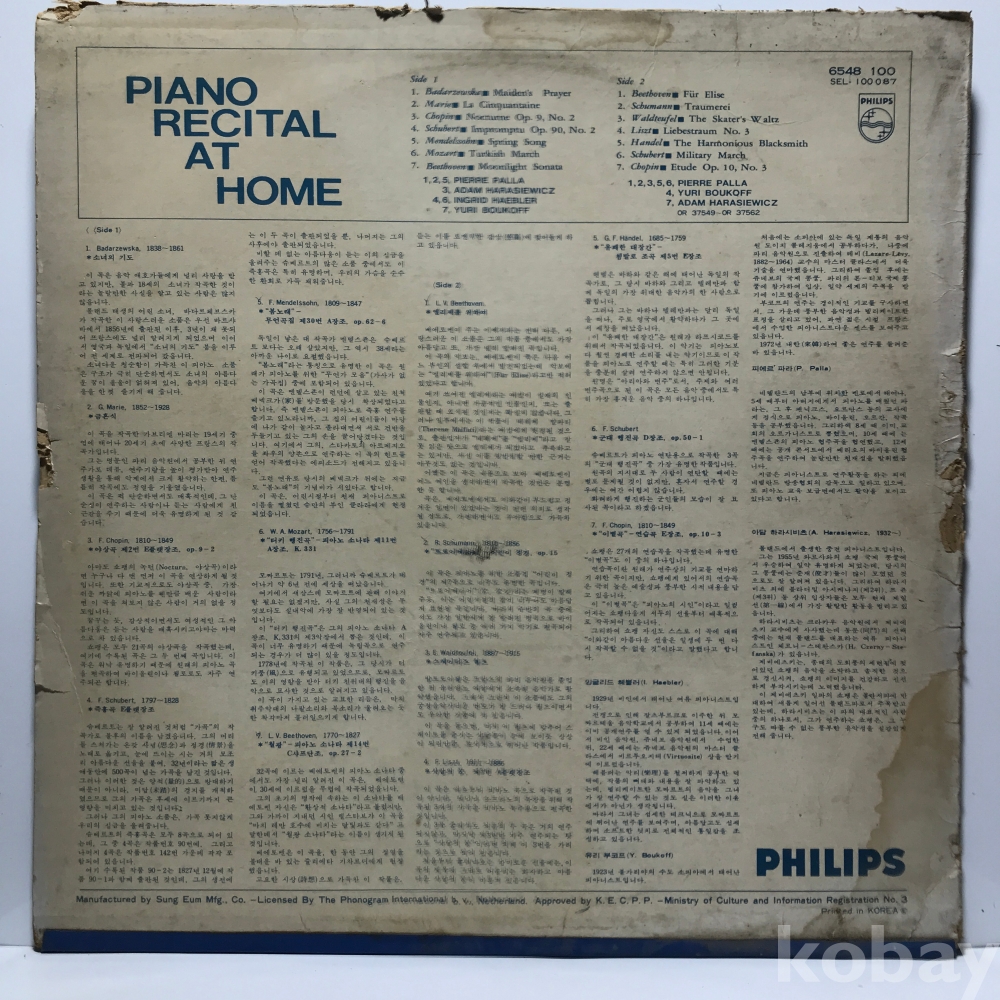LP 10,720-58 Maiden's Prayer - Piano Recital at Home . 자켓 VG 알판 VG+ 73 년 국내반