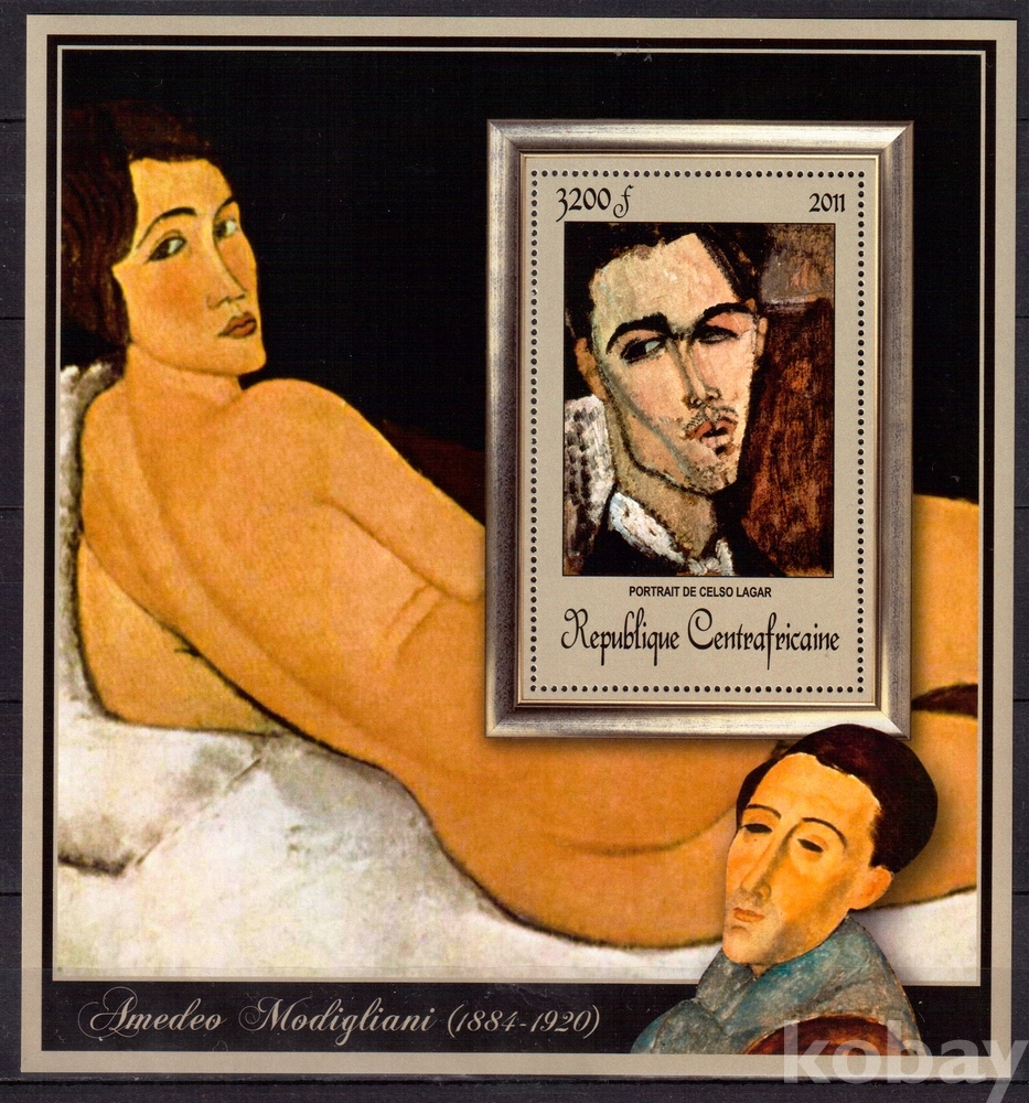 (누드명화) 중앙아프리카 2011 Amedeo Modigliani 셀소 라가르의 초상 deluxe sheet MNH