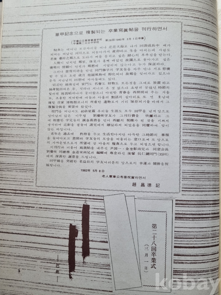 1982년 월남한 제28회 평양고보 졸업생 동창들이 뜻을 모아 원본 앨범을