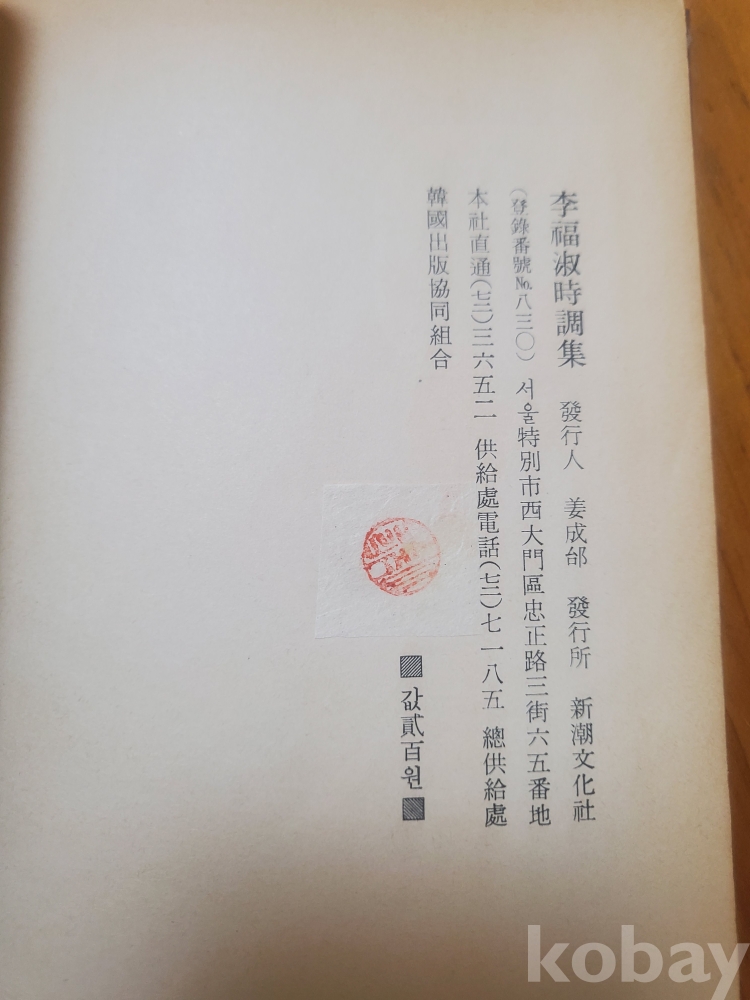 1. 이복숙 시조집, 이복숙, 신조문화사, 1966년, 104쪽, 상태 상, 사진 참조