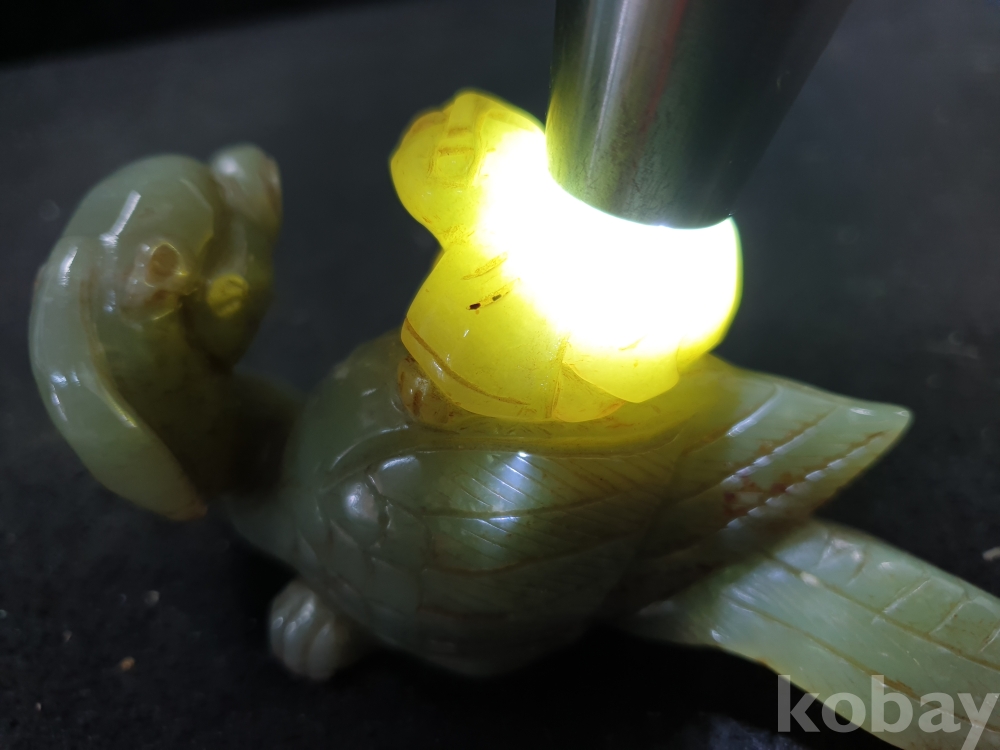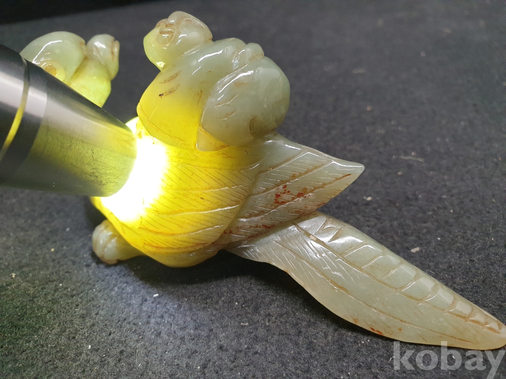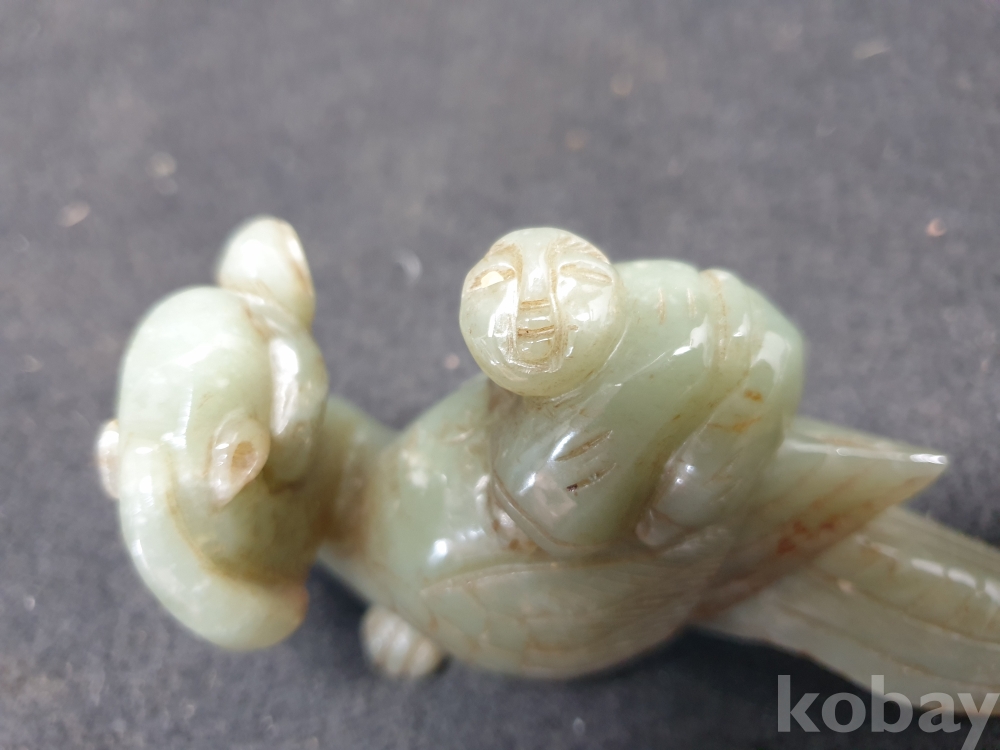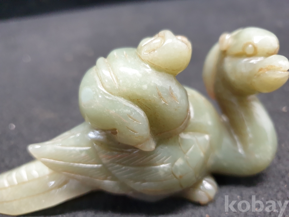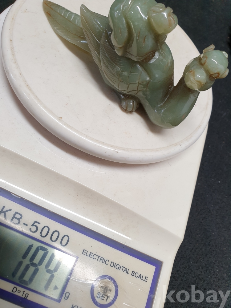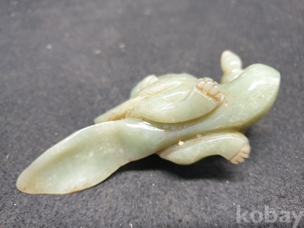 사이즈:.높이:6센치.지름:12센치. 무게:184그람. 설명:통옥으로 된 출토- 춘추전국시기 이쁜 기형의 생동감이 넘치는 투명성이 좋은 깨끗한 재질의 동자를 등에 업고있는 화전옥 중에서도 아주 귀한 청옥 백조상입니다.최대의 사진으로 본 기물의 이쁜 모습 보여드리겠습니다.상태 양호합니다.사진 참고 바랍니다.