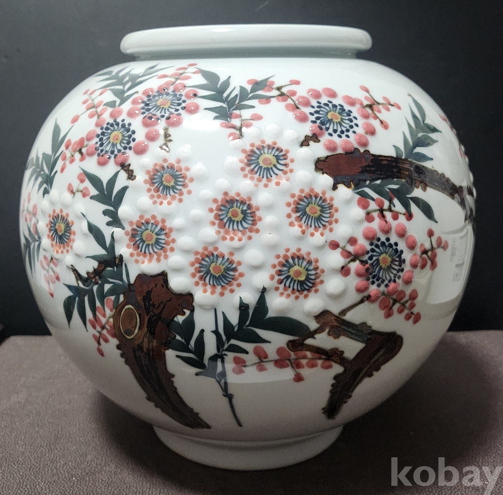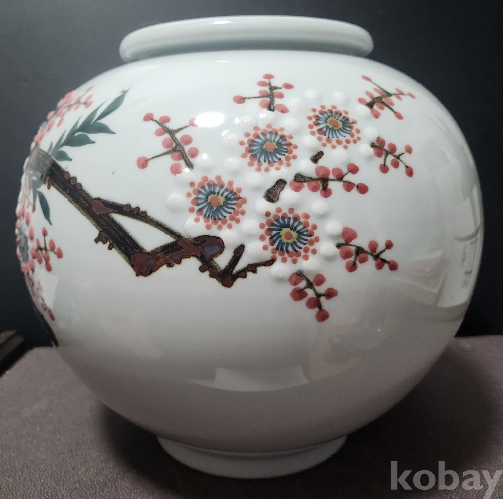 백자양각청화철화진사매화문호 白磁陽刻 靑華鐵畵辰沙梅花紋大壺 < 도예가 수결 작품 >