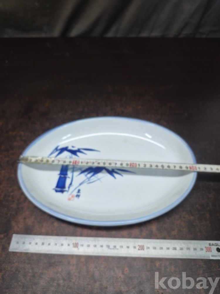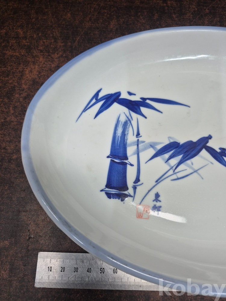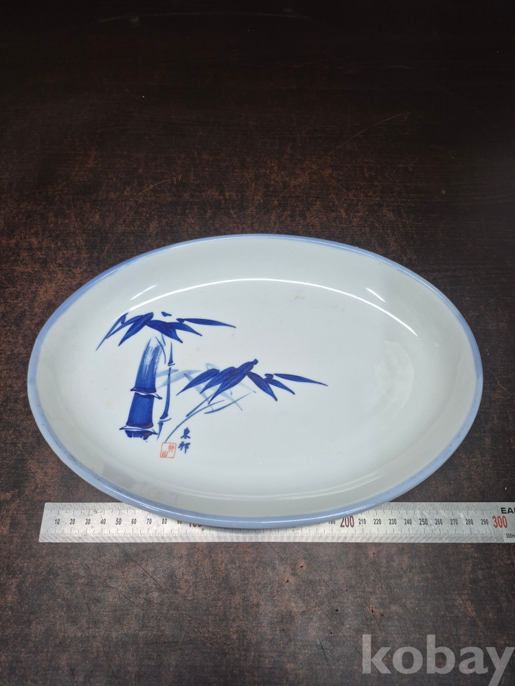 1970-80년대 도자기 접시 대나무 문양이 그려진 일산낙관 있음 31*22*4
