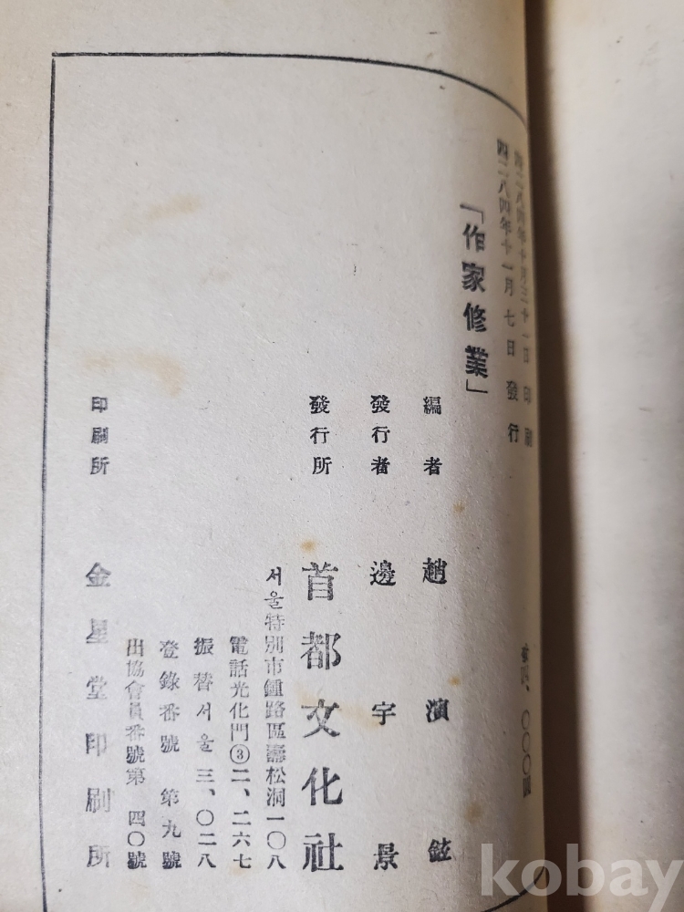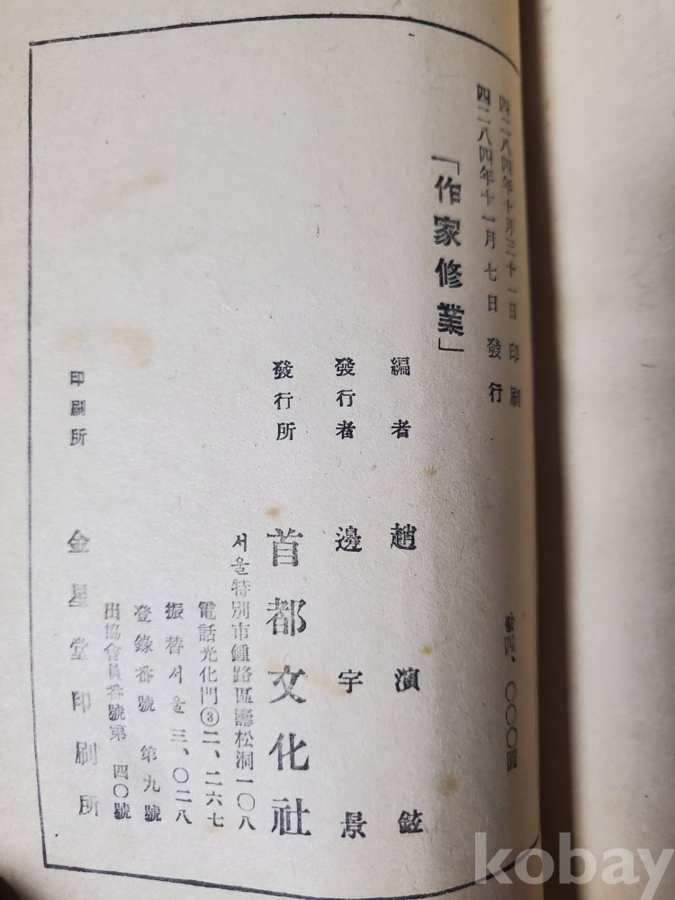 1. 작가수업 - 문단인이 걸어온 길, 조연현, 음악문화사, 1951년, 118쪽, 상태 중, 사진 참조